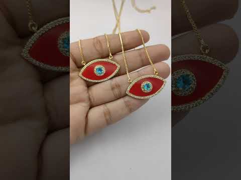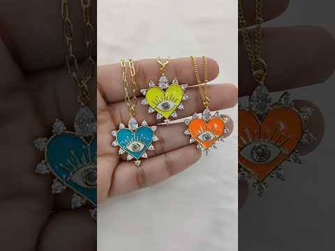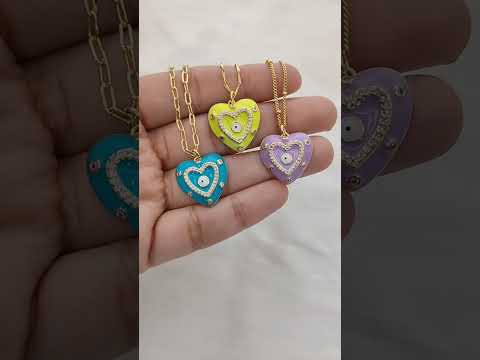 Gold Enamel Colorful Evil Eye Heart Charm Necklace CZ Micropavé Protective Love Jewelry for Women – Selling Per Piece