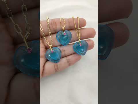 Minimalist Blue Topaz Quartz Heart Necklace Gold Plated Carved Gemstone Pendant with Fancy Pinch Bail- Selling Per Piece
