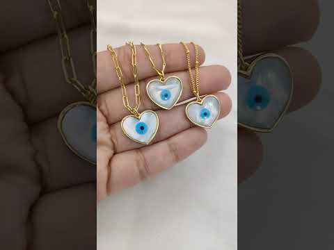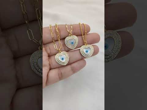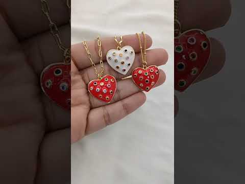 Turkish Evil Eye Heart Necklace for Women, 18K Gold Plated Enamel Pendant with Micropavé Cubic Zirconia, Stylish Boho Protection Jewelry- Selling Per Piece
