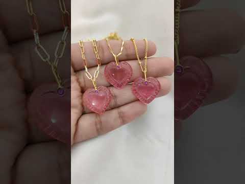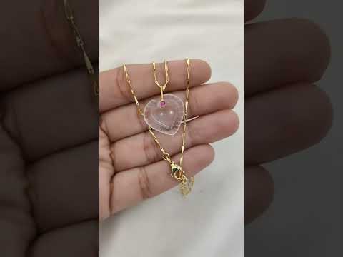 Gold Plated Pink Tourmaline Quartz Heart Necklace Hand Carved Gemstone Pendant with Fancy Pinch Bail Minimalist Layering Jewelry- Selling Per Piece