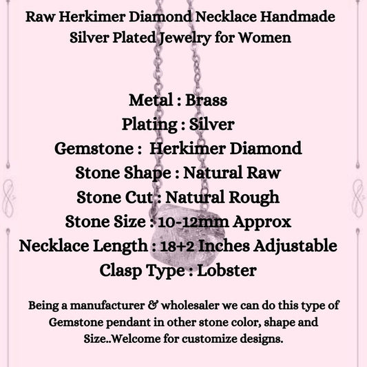 Raw Herkimer Diamond Necklace Handmade Silver Plated Jewelry for Women