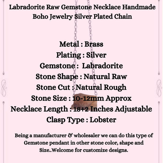 Labradorite Raw Gemstone Necklace Handmade Boho Jewelry Silver Plated Chain