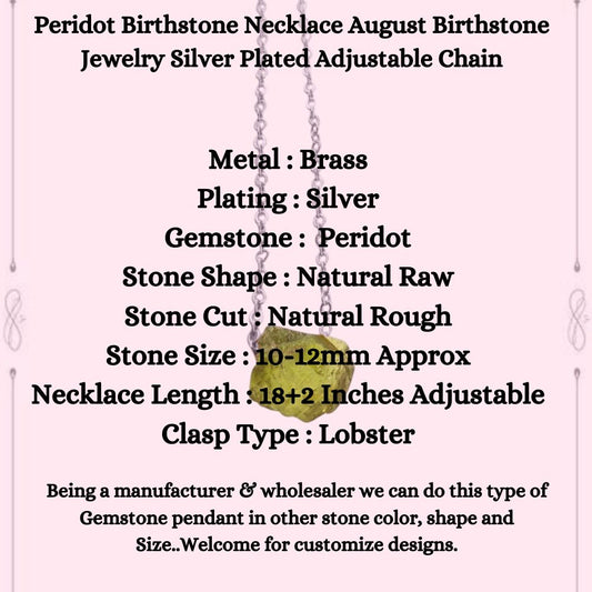 Peridot Birthstone Necklace August Birthstone Jewelry Silver Plated Adjustable Chain