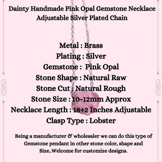 Dainty Handmade Pink Opal Gemstone Necklace Adjustable Silver Plated Chain