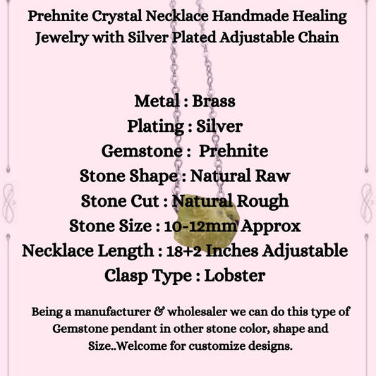Prehnite Crystal Necklace Handmade Healing Jewelry with Silver Plated Adjustable Chain