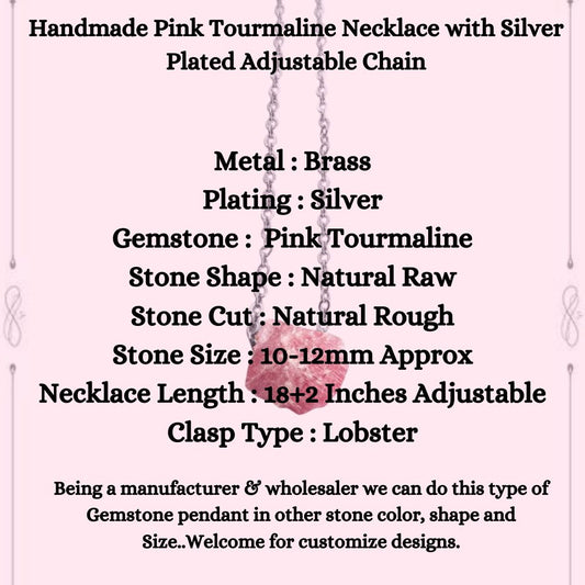 Handmade Pink Tourmaline Necklace with Silver Plated Adjustable Chain
