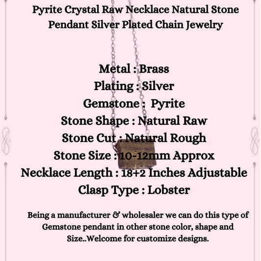 Pyrite Crystal Raw Necklace Natural Stone Pendant Silver Plated Chain Jewelry