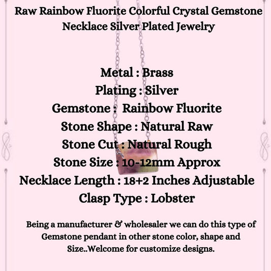 Raw Rainbow Fluorite Colorful Crystal Gemstone Necklace Silver Plated Jewelry