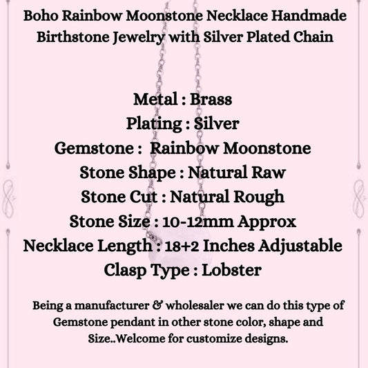 Boho Rainbow Moonstone Necklace Handmade Birthstone Jewelry with Silver Plated Chain