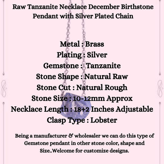 Raw Tanzanite Necklace December Birthstone Pendant with Silver Plated Chain