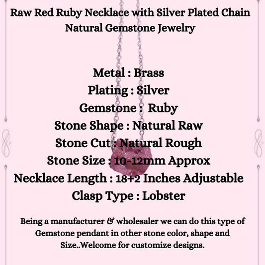 Raw Red Ruby Necklace with Silver Plated Chain Natural Gemstone Jewelry