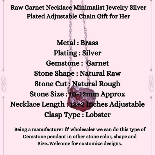 Raw Garnet Necklace Minimalist Jewelry Silver Plated Adjustable Chain Gift for Her