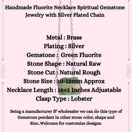 Handmade Fluorite Necklace Spiritual Gemstone Jewelry with Silver Plated Chain