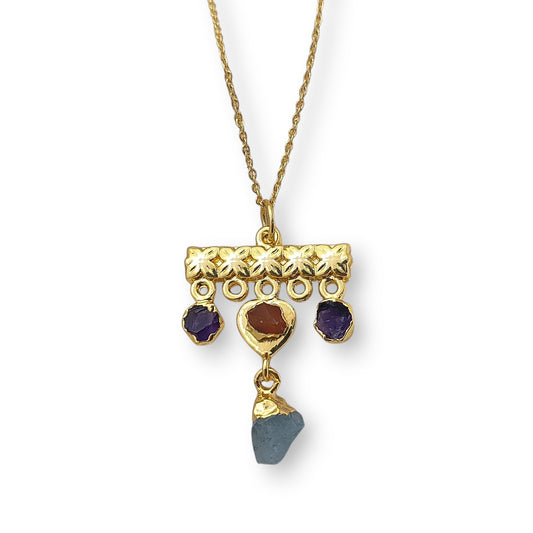 Minimalist Raw Crystal Necklace with Aquamarine, Carnelian & Amethyst Handmade Gold Plated Birthstone Jewelry