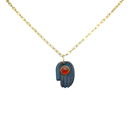 Boho Fish Carved Gemstone Necklace in Gold Plated Chain Handmade Spiritual Jewelry for Women- Selling Per Piece