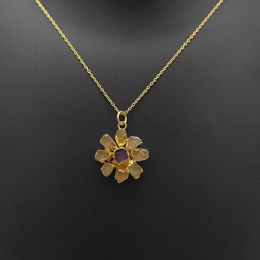 Purple Amethyst Flower Pendant Necklace Handmade Raw Gemstone Jewelry Bohemian Gift for Women- Selling Per Piece