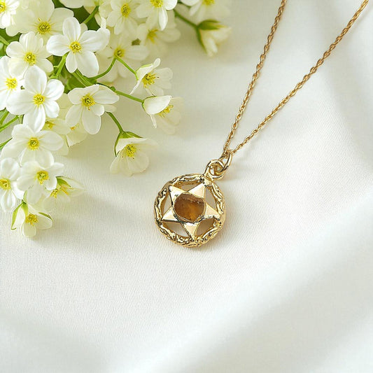 November Birthstone Raw Citrine Necklace Minimalist Gold Plated Star Pendant for Gift