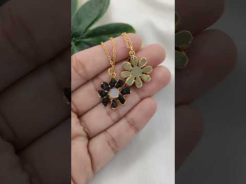 Natural Aquamarine and Peridot Crystal Necklace Raw Gemstone Flower Pendant Unique Gift Jewelry- Selling Per Piece