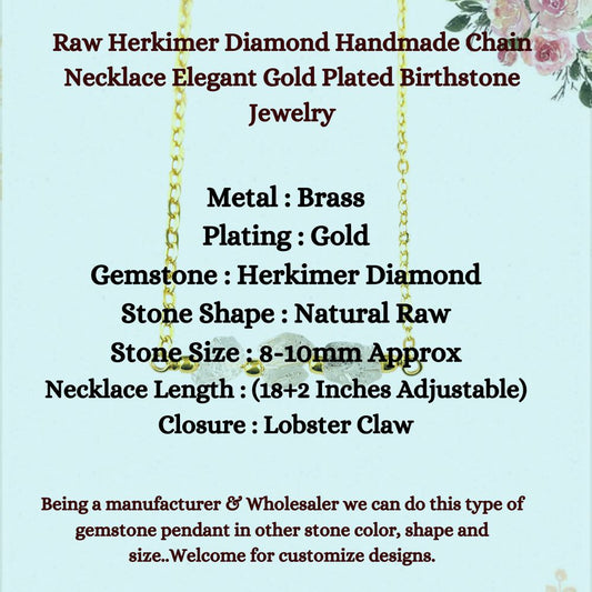 Raw Herkimer Diamond Handmade Chain Necklace Elegant Gold Plated Birthstone Jewelry Gift for Women- Selling Per Piece