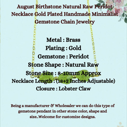 August Birthstone Natural Raw Peridot Necklace Gold Plated Handmade Minimalist Gemstone Chain Jewelry Gift for Women- Selling Per Piece