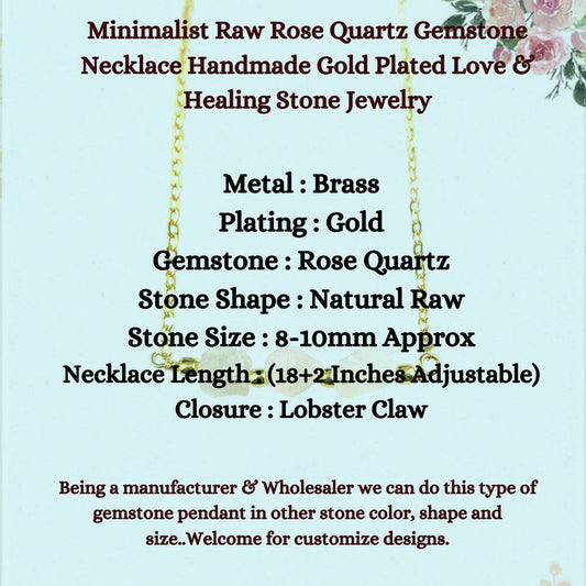 Minimalist Raw Rose Quartz Gemstone Necklace Handmade Gold Plated Love & Healing Stone Jewelry for Women- Selling Per Piece