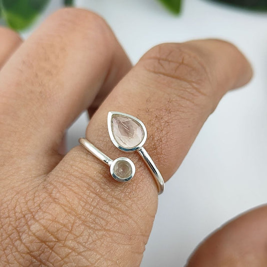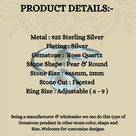 Adjustable Double Gemstone Rose Quartz Ring Handmade 925 Sterling Silver Jewelry for Women