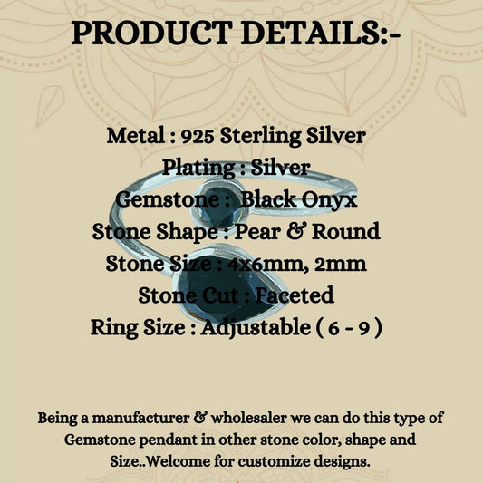 Black Onyx Double Gemstone Ring Adjustable Handmade Sterling Silver Open Band Gift for Women