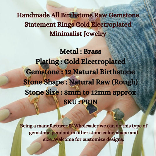 Handmade All Birthstone Raw Gemstone Statement Rings Gold Electroplated Minimalist Jewelry For Gift- Selling Per Piece