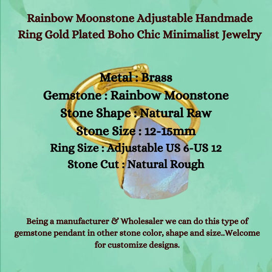 Rainbow Moonstone Adjustable Handmade Ring Gold Plated Boho Chic Minimalist Jewelry for Women- Selling Per Piece