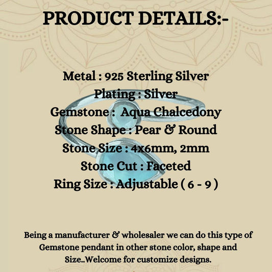 Minimalist Aqua Chalcedony Ring Handmade Adjustable 925 Sterling Silver Double Gemstone Jewelry Gift