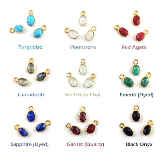 Oval 6x4mm Faceted Gemstone Bezel Pendant Dainty 925 Silver Gold Plated Charm for DIY Jewelry
