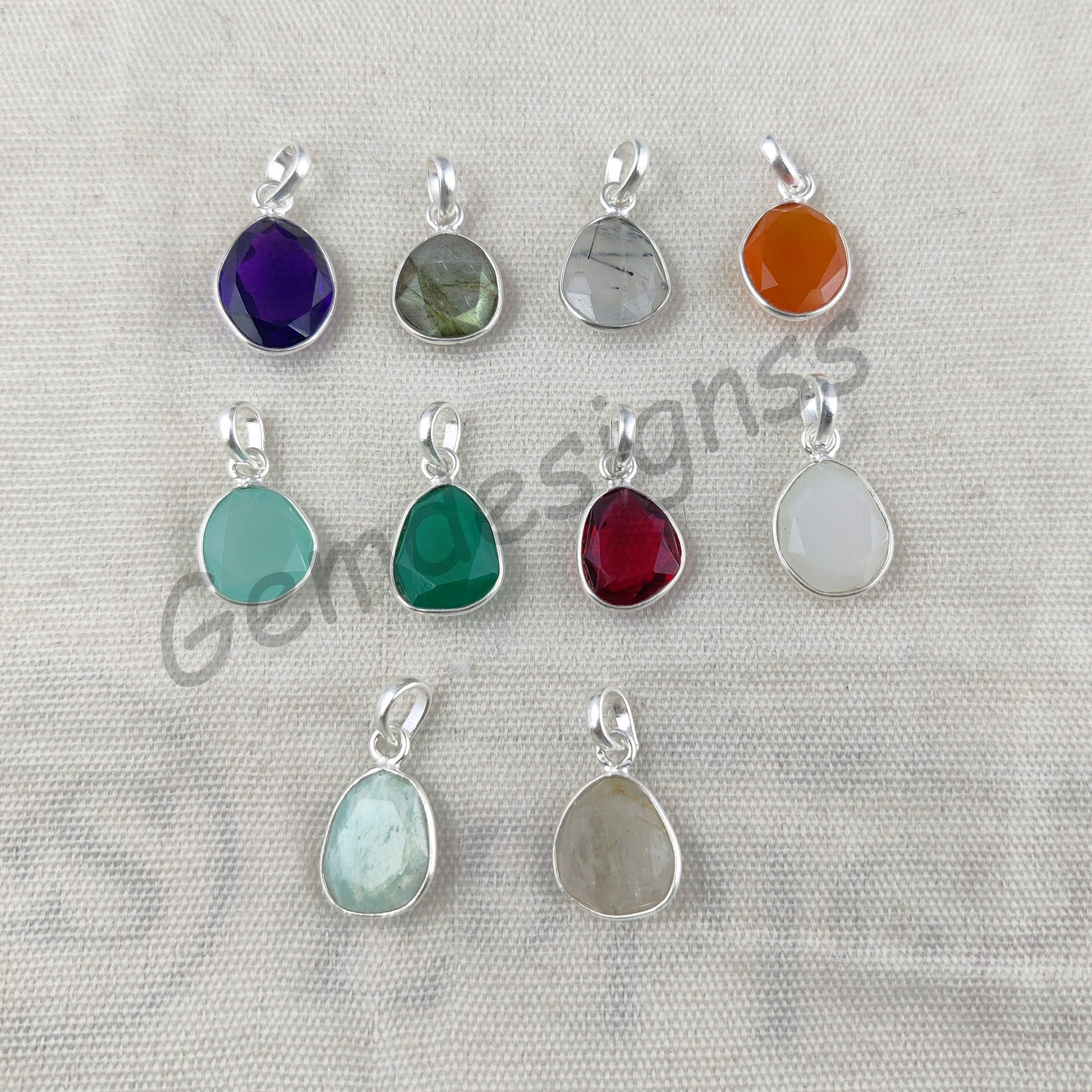 10-15mm Semi-Precious Gemstones Pendants Gold Plated Sterling Silver Birthstone Pendant For Jewelry Making- Selling Per Piece