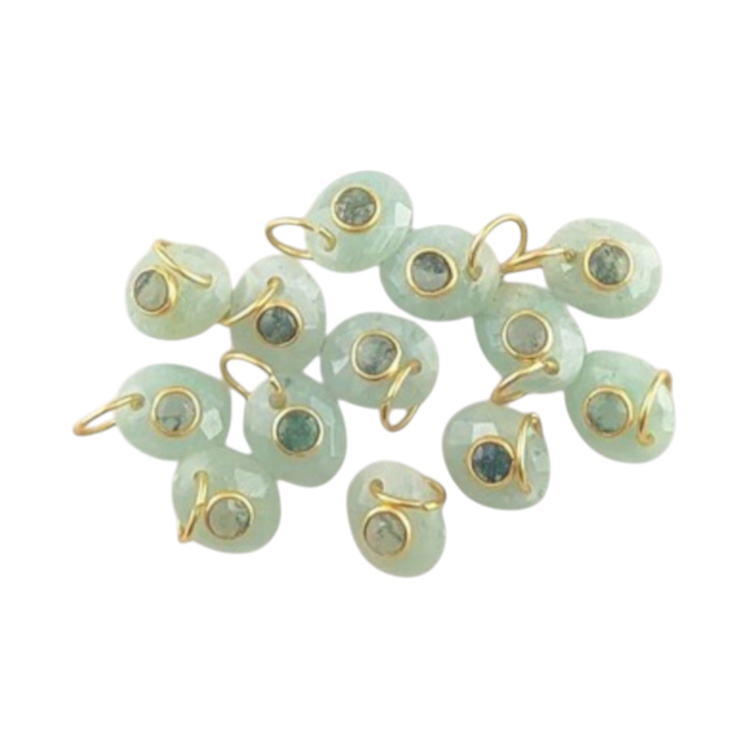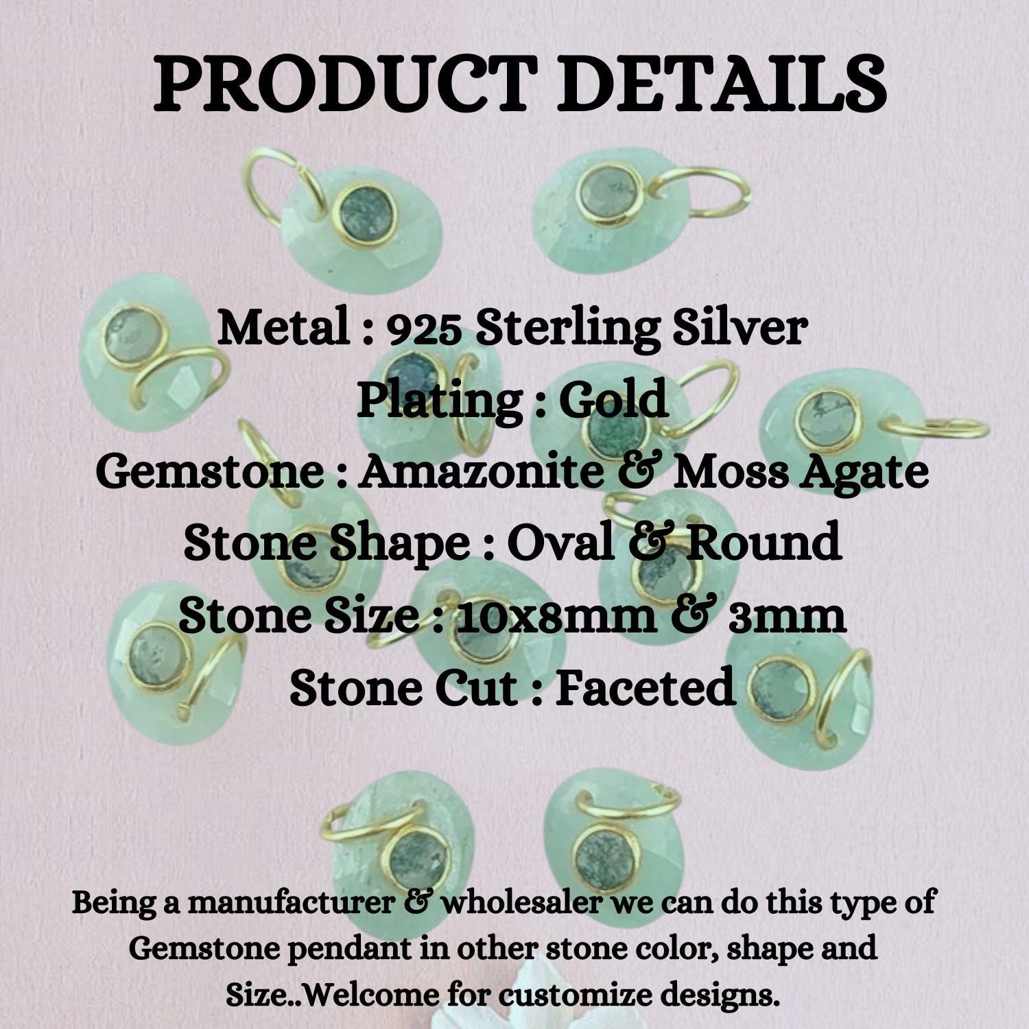 10x8mm Oval Amazonite Pendant Gold Plated 925 Silver Charms with Moss Agate for Healing & Spiritual Jewelry- Selling Per Piece