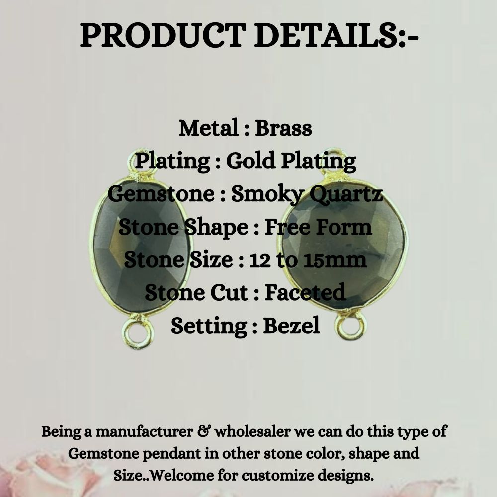 12–15mm Smoky Quartz Bezel Connector, Natural Gemstone Link for Handmade Necklaces, Bracelets, and Earrings- Selling Per Piece