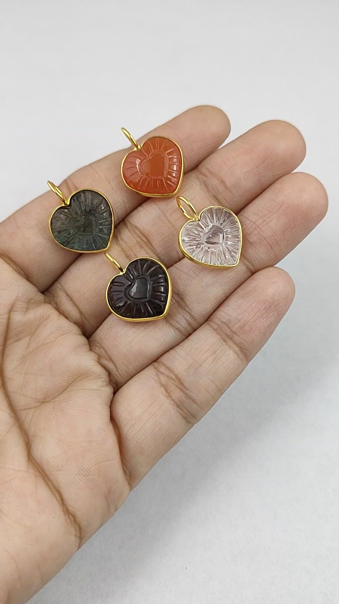 15mm Heart Carved Gemstone Pendant Gold Plated Silver Handmade Birthstone Jewelry- Selling Per Piece