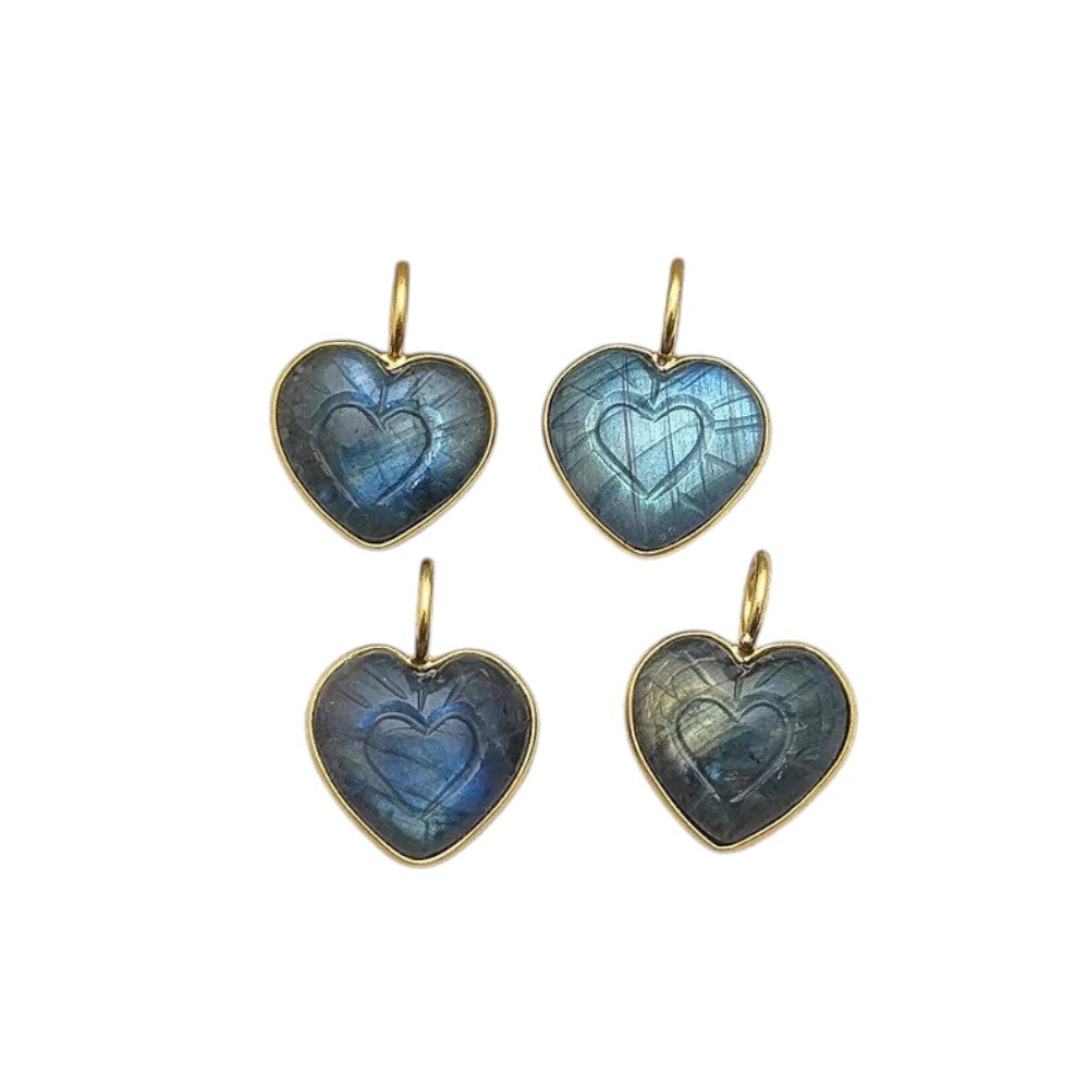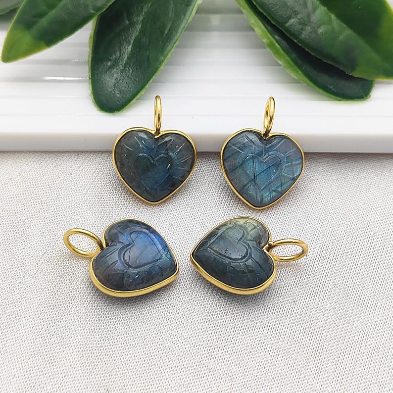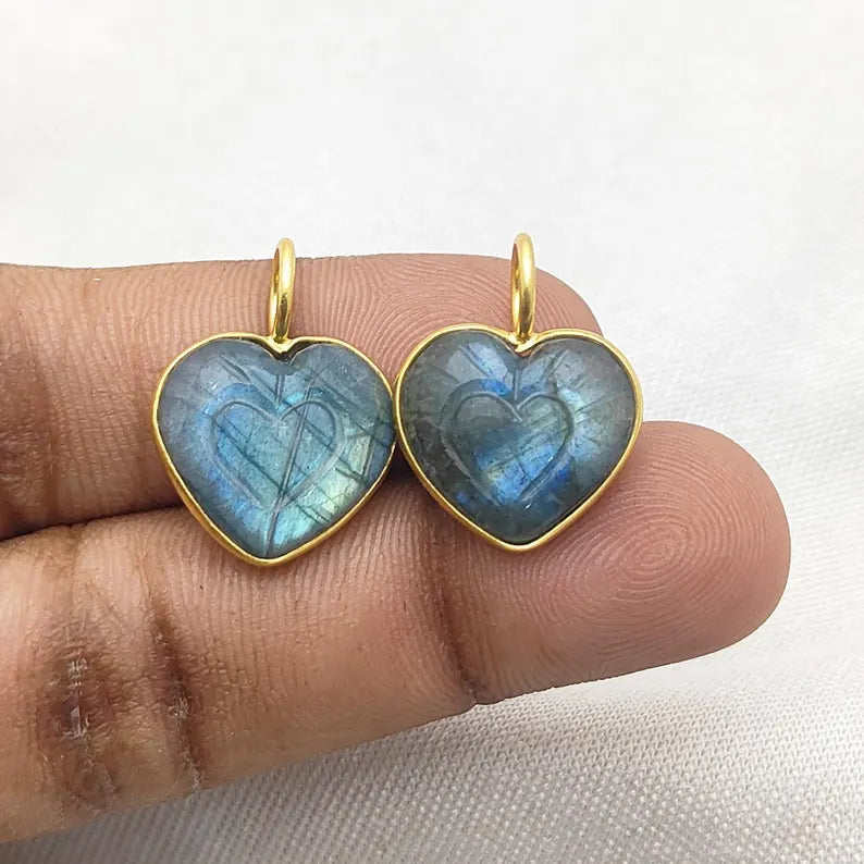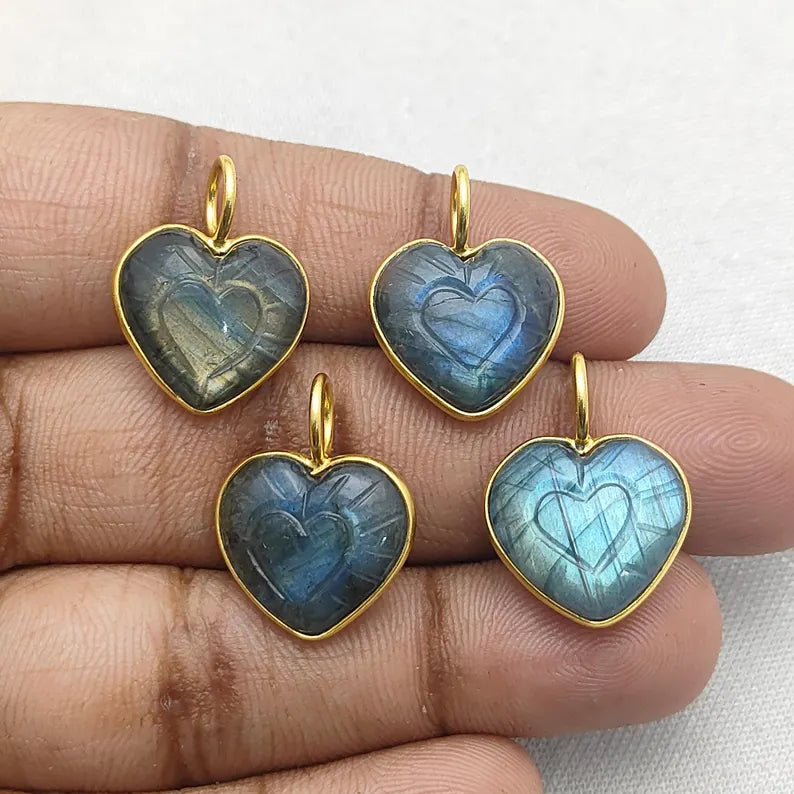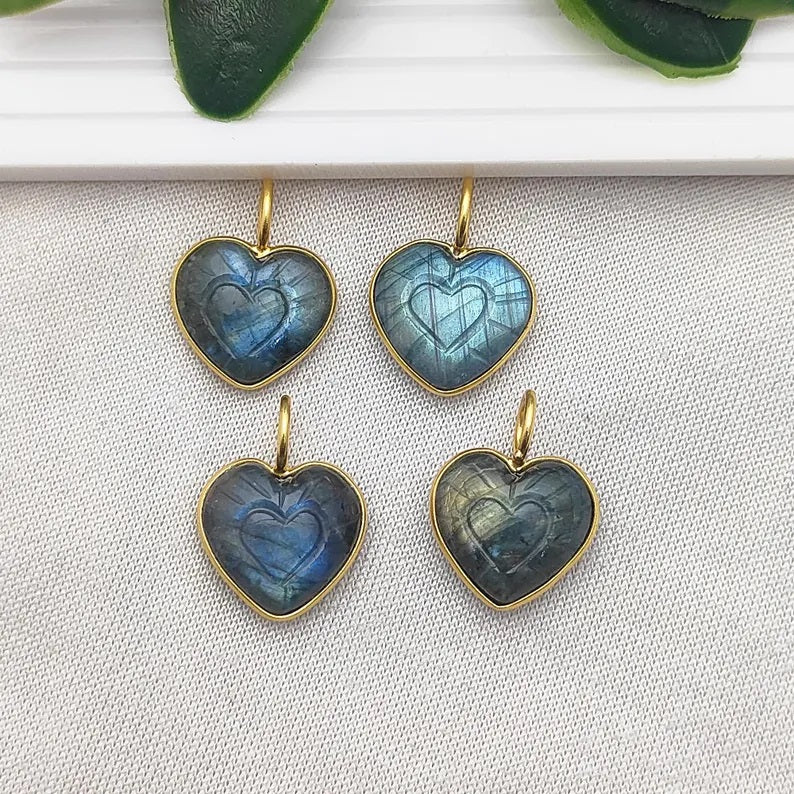 15mm LabradoriHeart Pendant Handmade Gold Plated Sterling Silver Healing Gemstone Necklace Charms for Women- Selling Per Piece