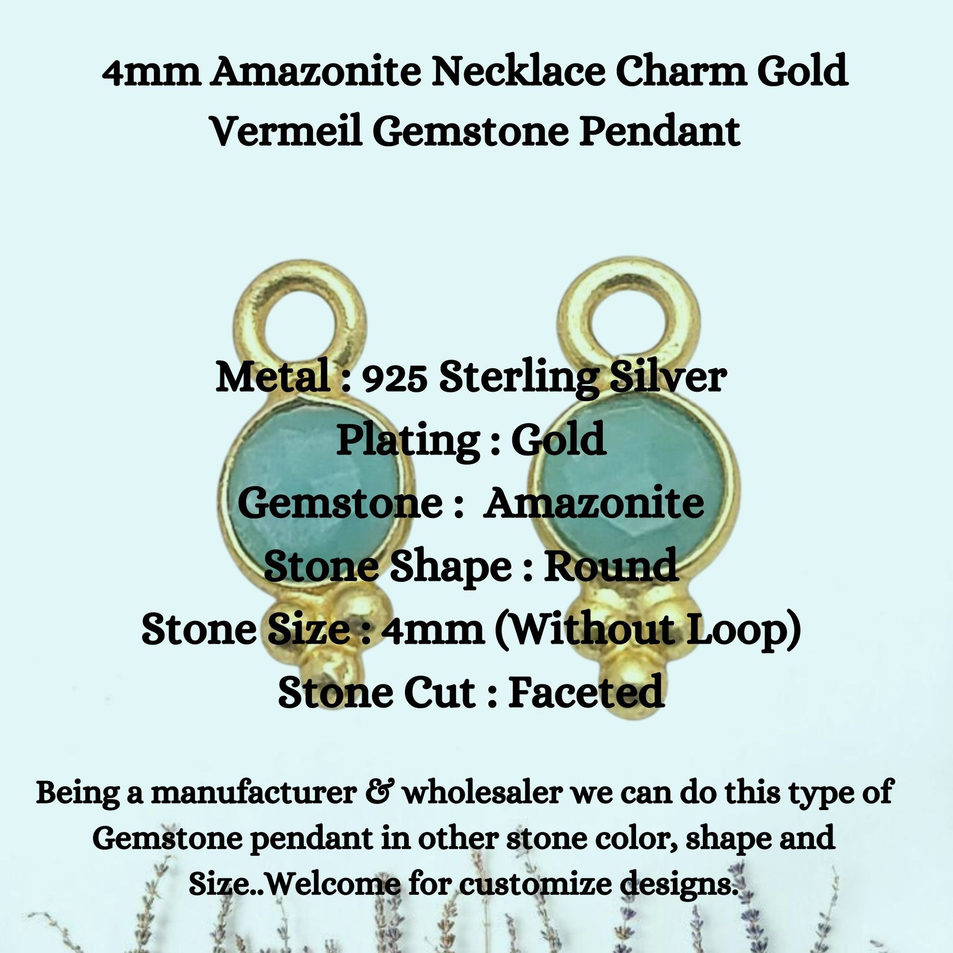 4mm Amazonite Necklace Charm Gold Vermeil Gemstone Pendant