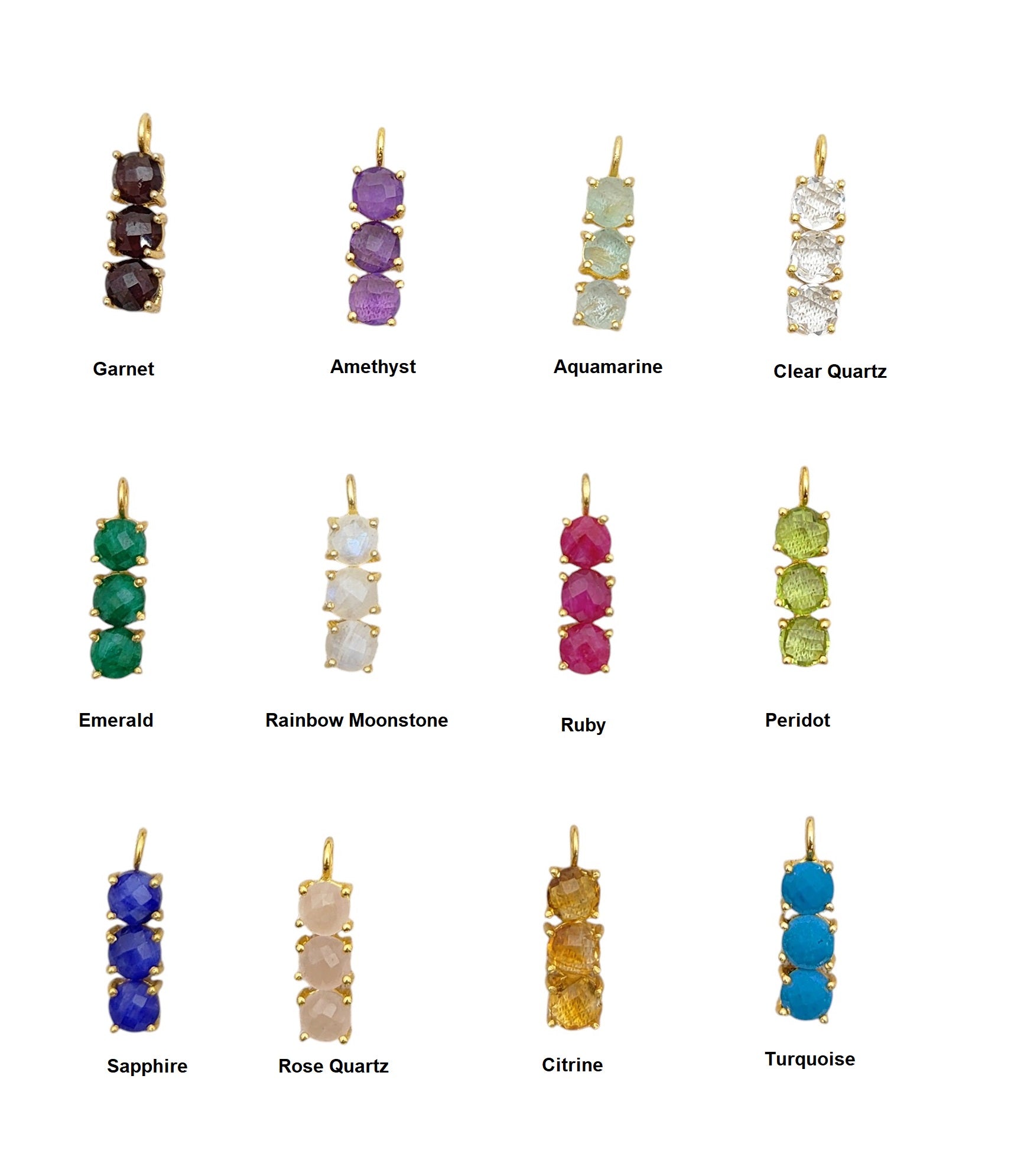 6mm Round Briolette Three Birthstone Pendant 18K Gold Plated Bezel Birthstone Charm for Personalized Jewelry