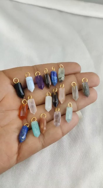 6X14mm Multi Gemstone Pencil Point Spike Pendant Gold Vermeil Handmade Dainty Minimalist Jewelry- Selling Per Piece