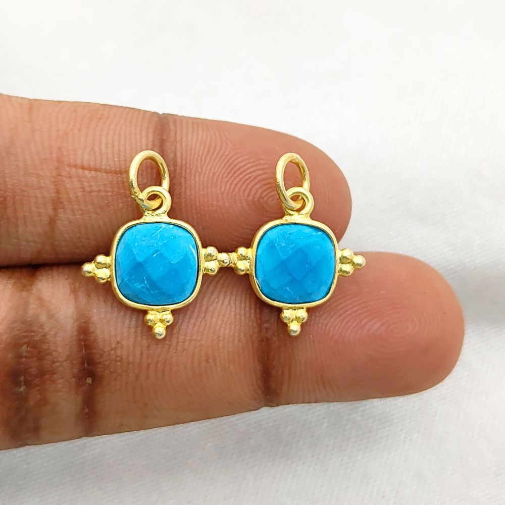 8mm Cushion Cut Turquoise Pendant Gold Plated Sterling Silver Handmade Charm