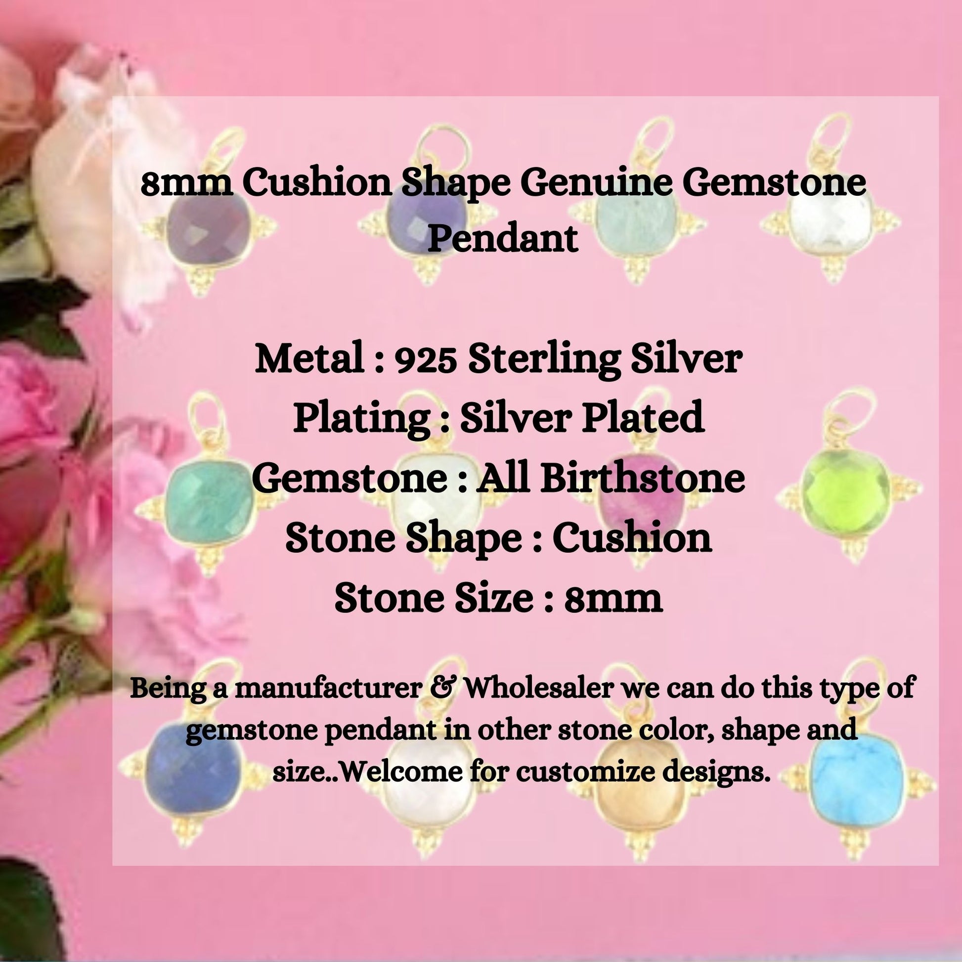 Being a manufacturer we can do this type of gemstone pendant in other stone color, shape and size.. Welcome for customize designs.