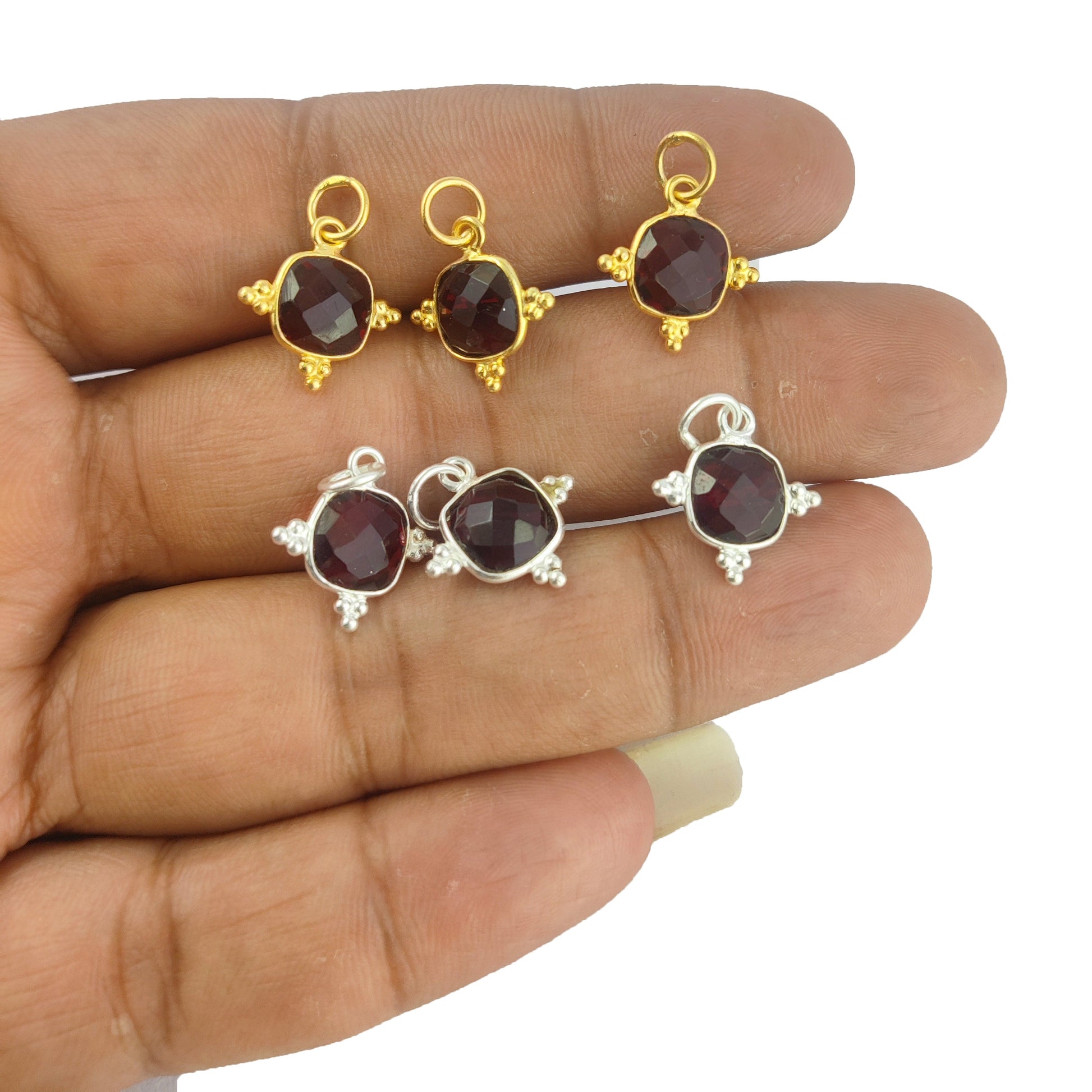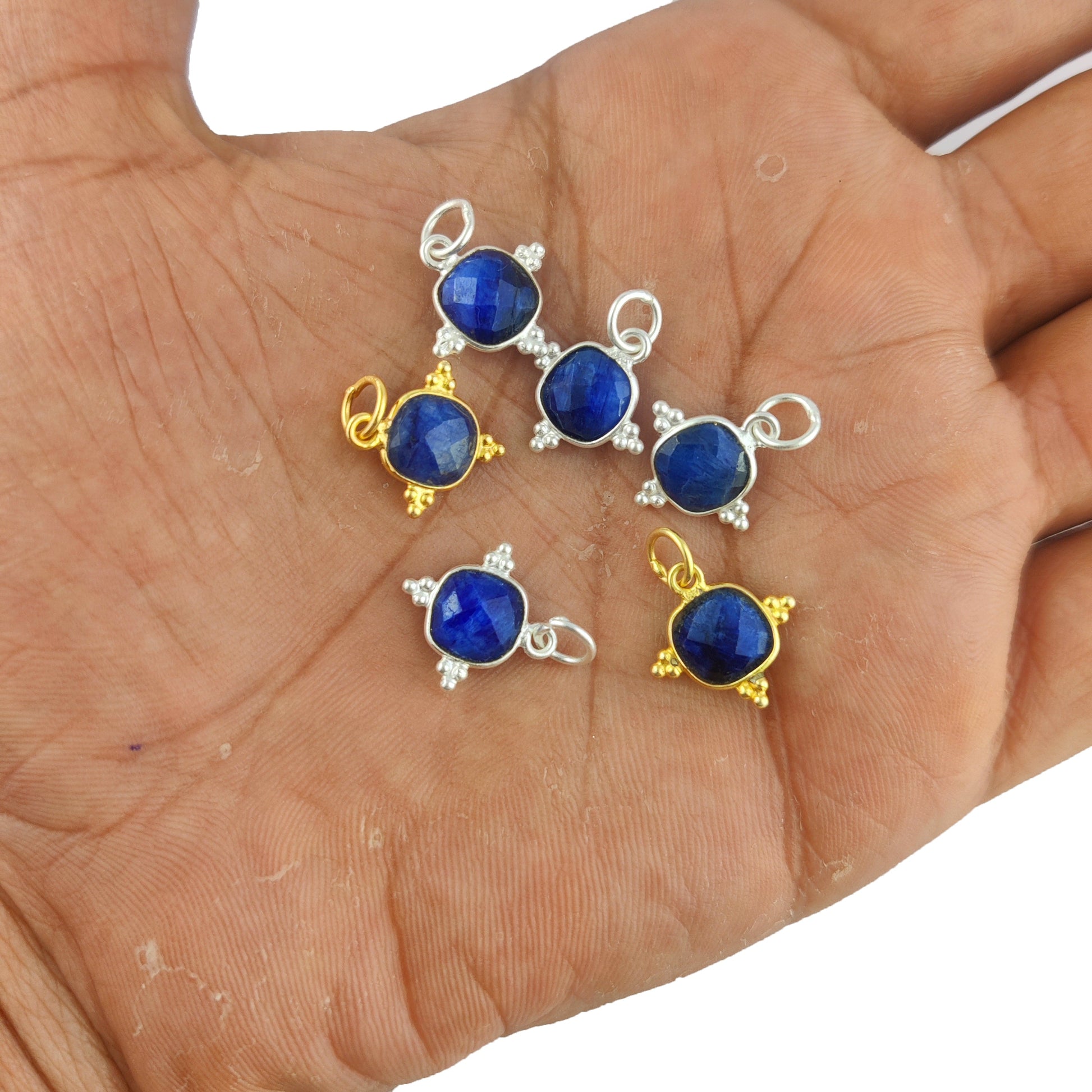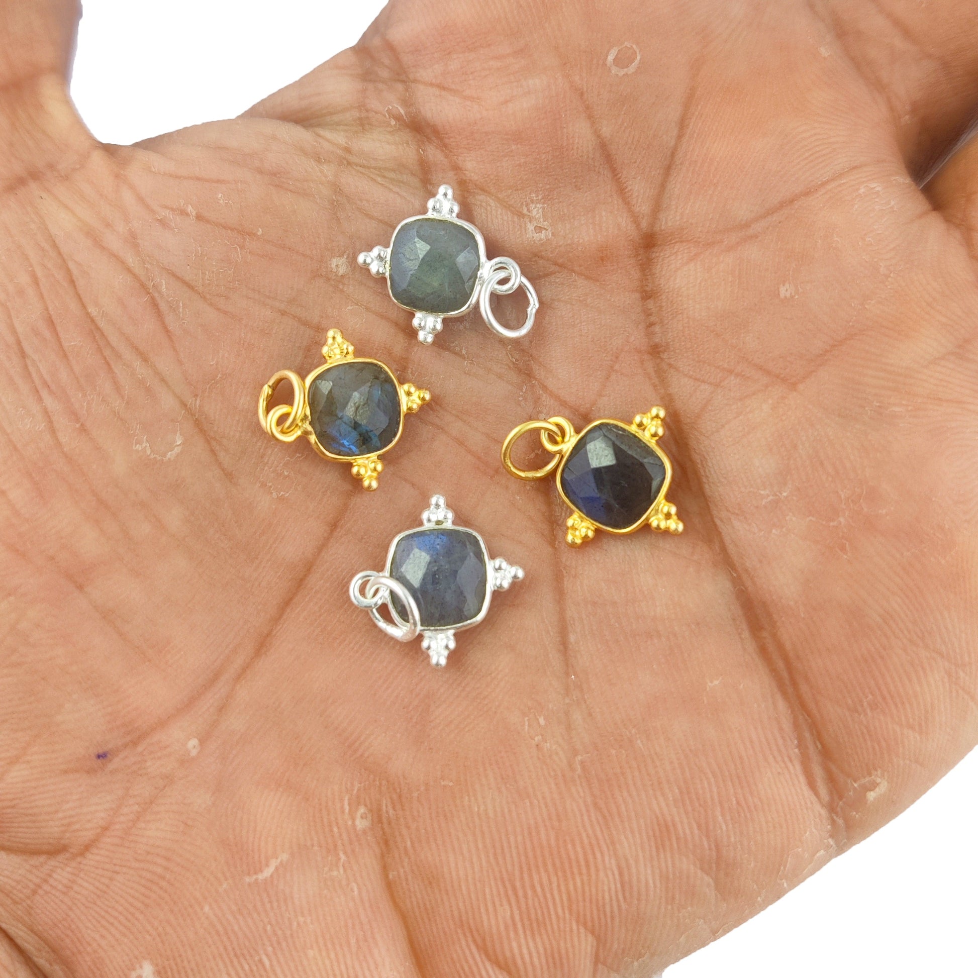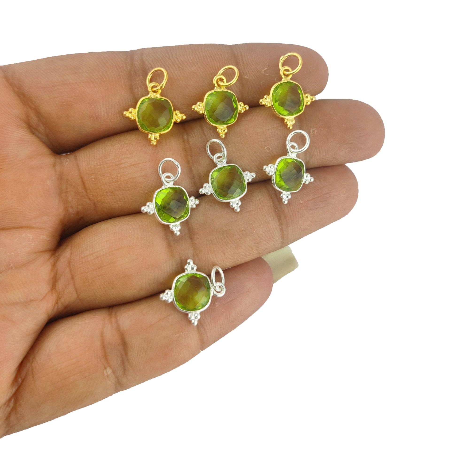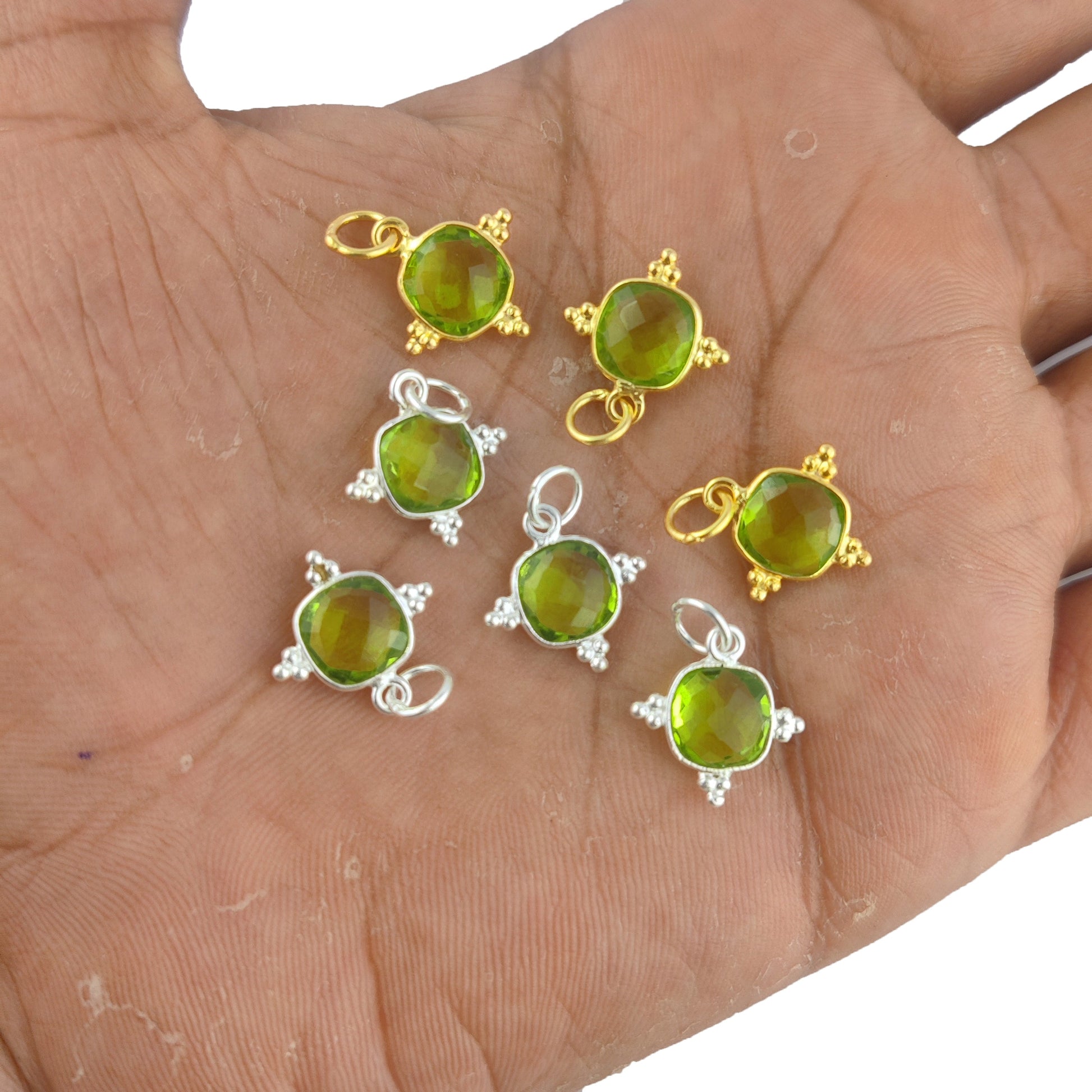 8mm Cushion Gemstone Dainty Pendant Gold Vermeil Handmade Charms Minimalist Jewelry For Women- Selling Per Piece