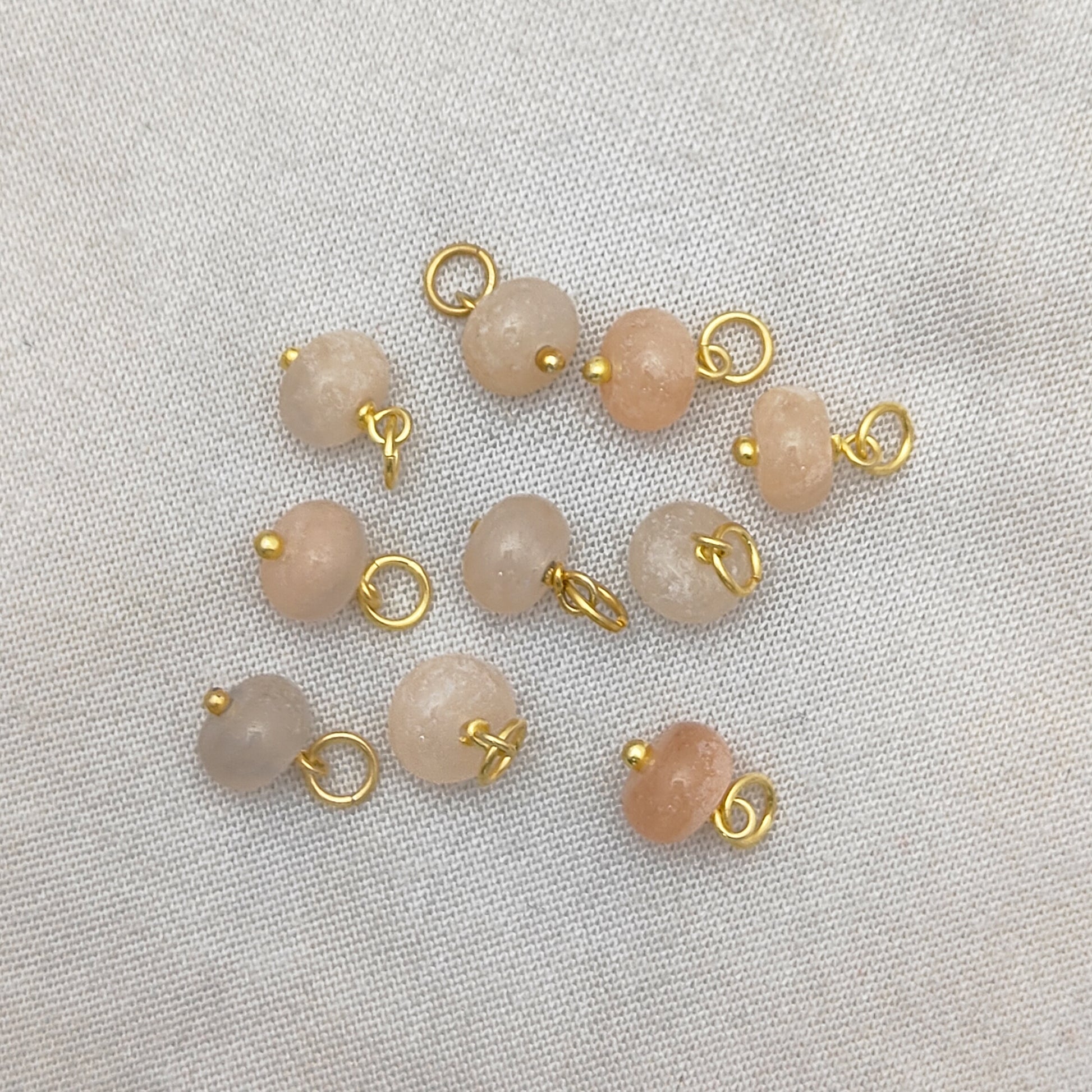 8mm Peach Moonstone Beaded Handmade Pendant Gold Vermeil Gemstone Charm for DIY Minimalist Jewelry- Selling Per Piece