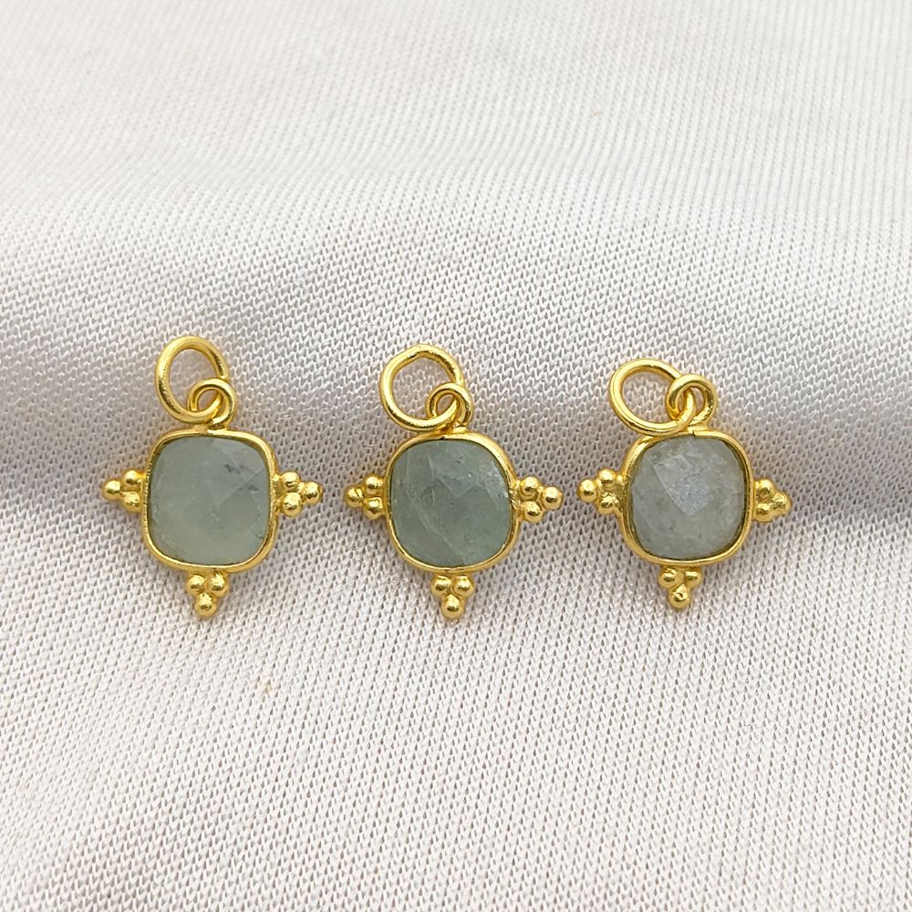 Aquamarine Pendant 8mm Cushion Cut Gold Plated Sterling Silver Birthstone Jewelry