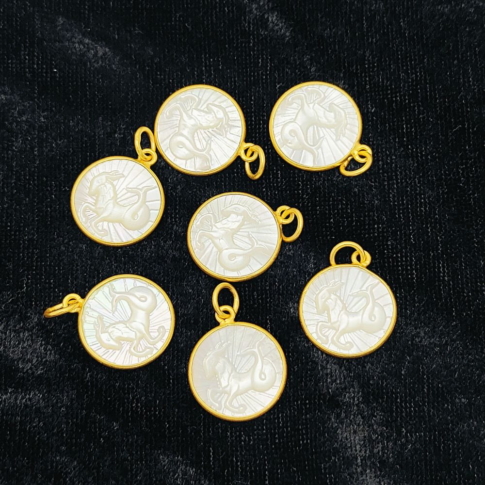 Astrological Capricorn Charm Stunning Gold Plated with White Pearl