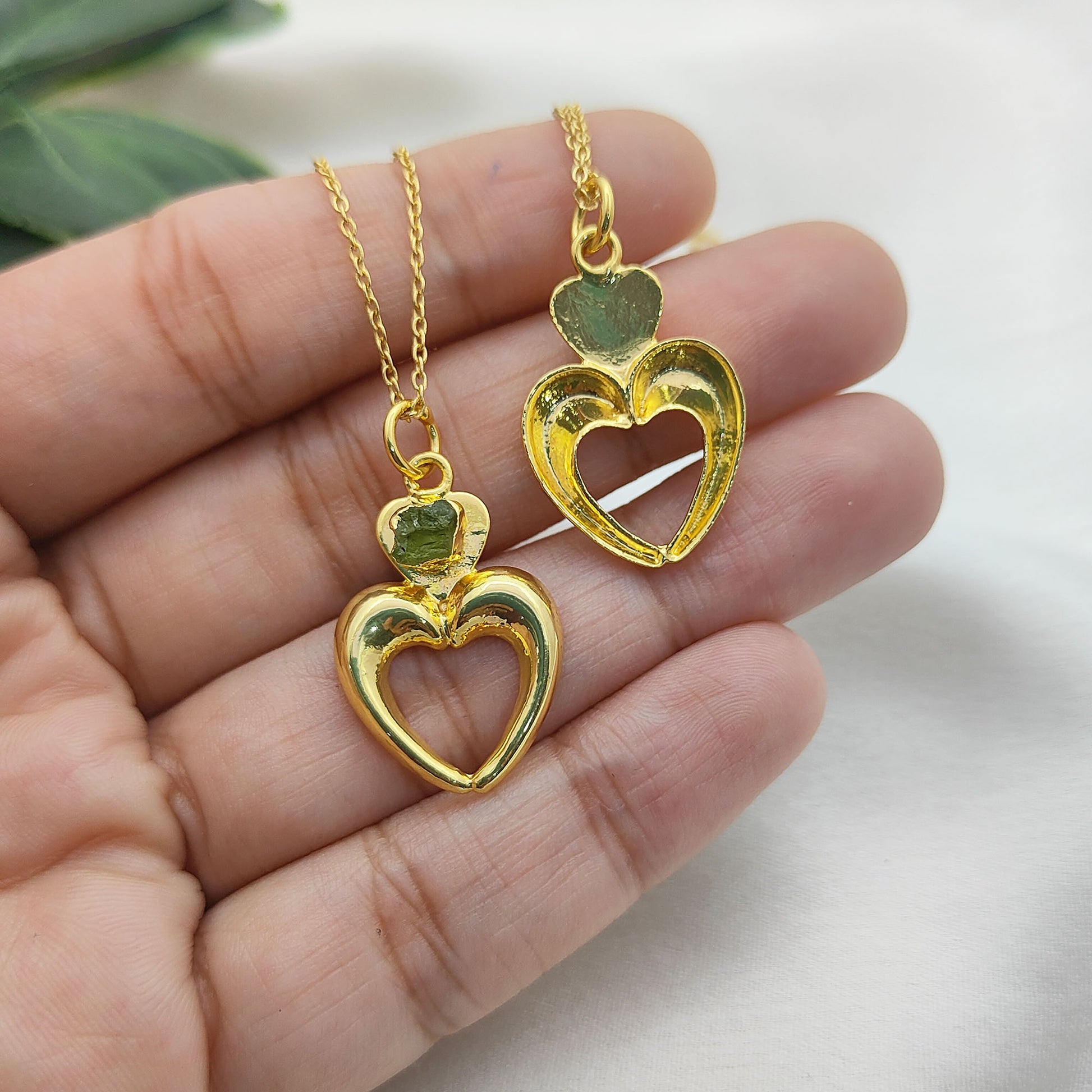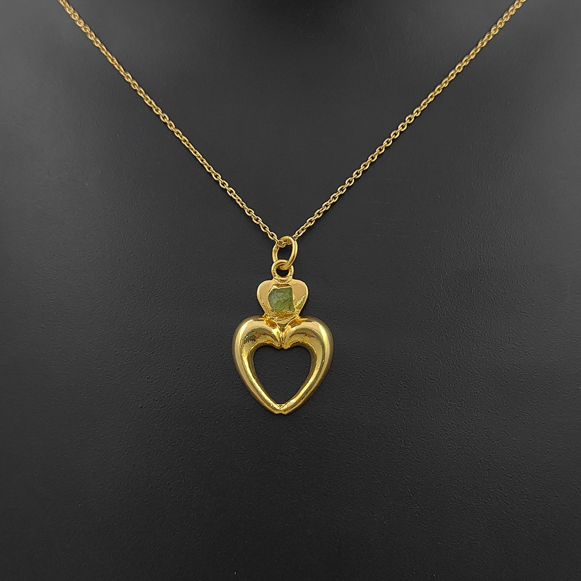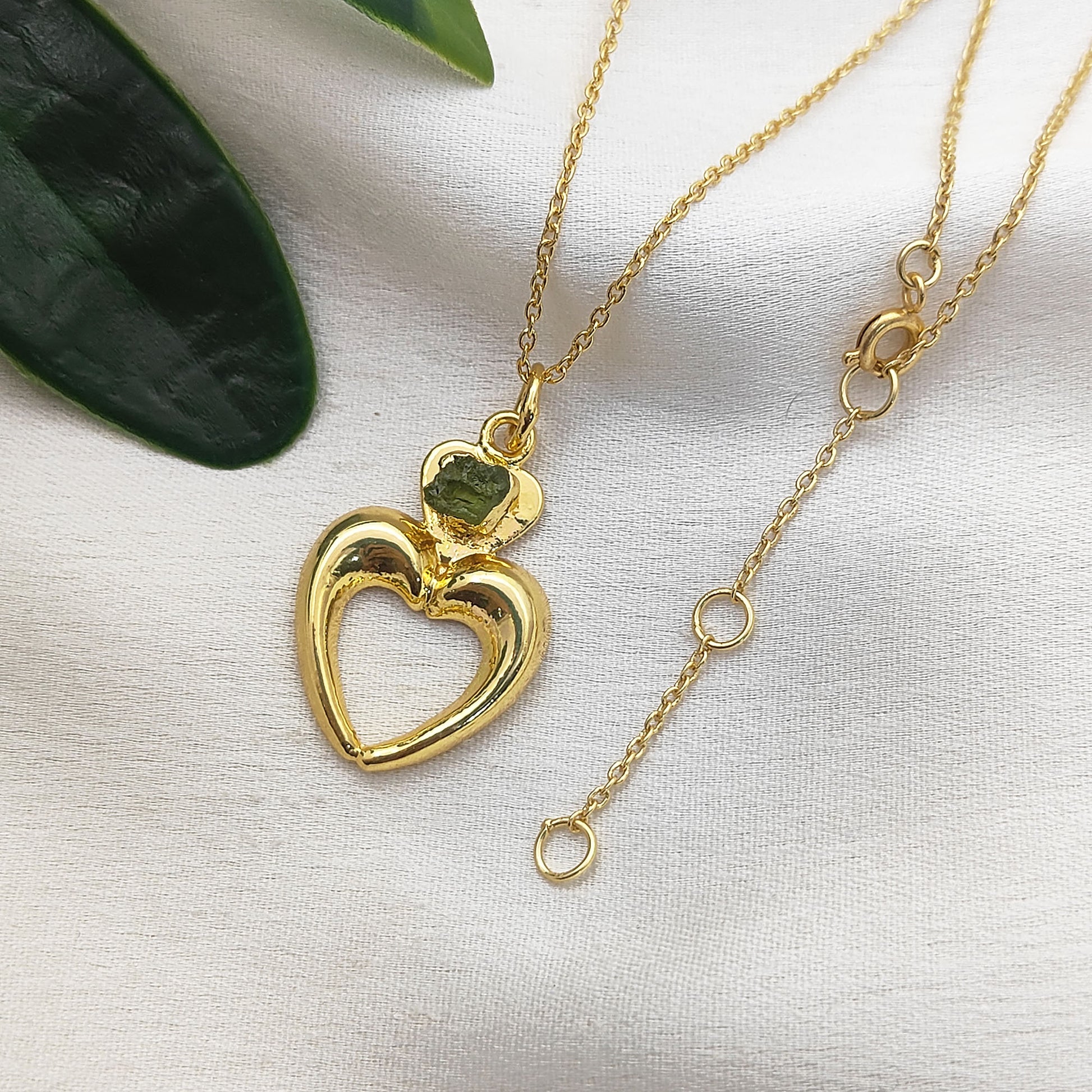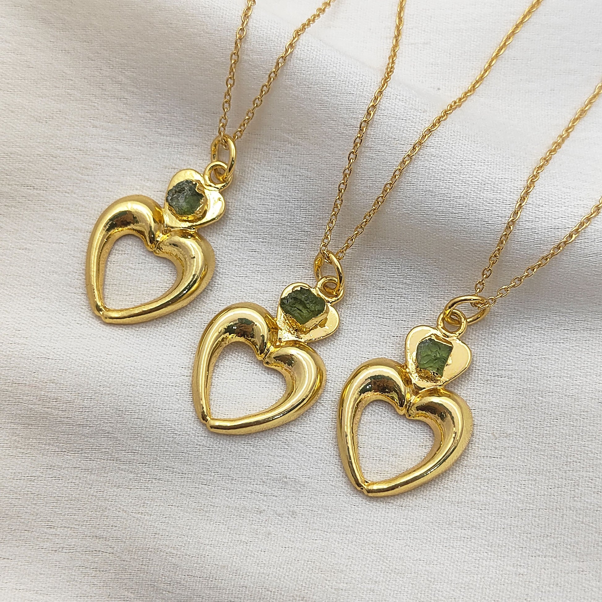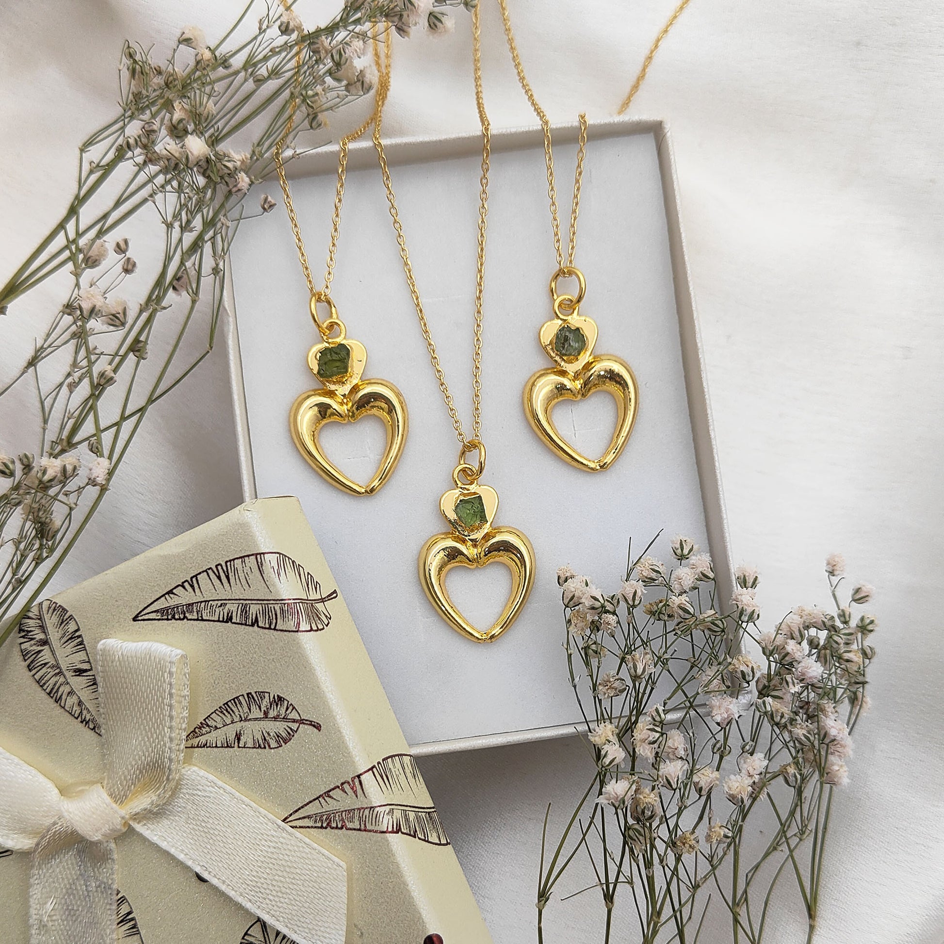 August Birthstone Raw Peridot Necklace with Heart-Shaped Pendant 14K Gold Electroplated Handmade Boho Jewelry