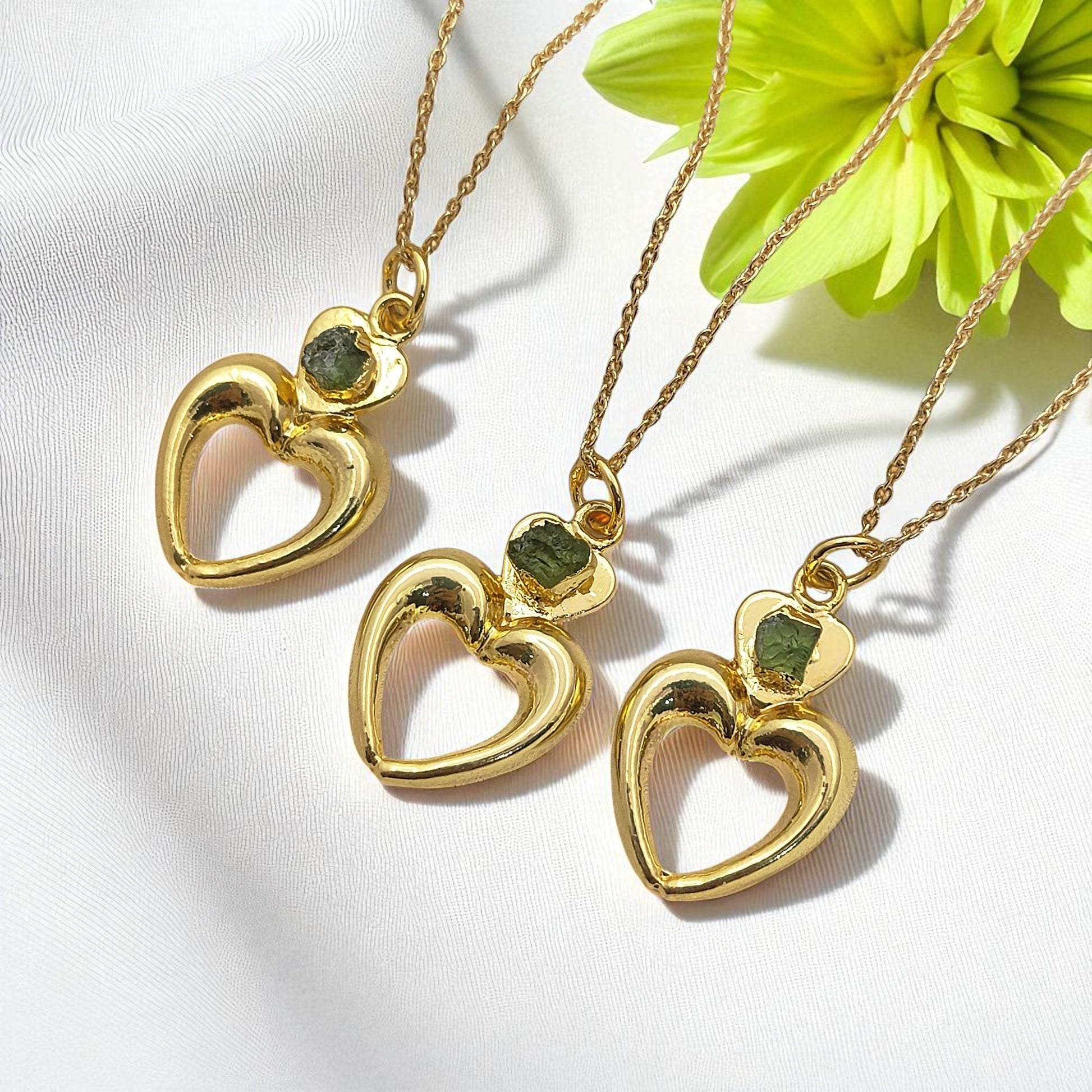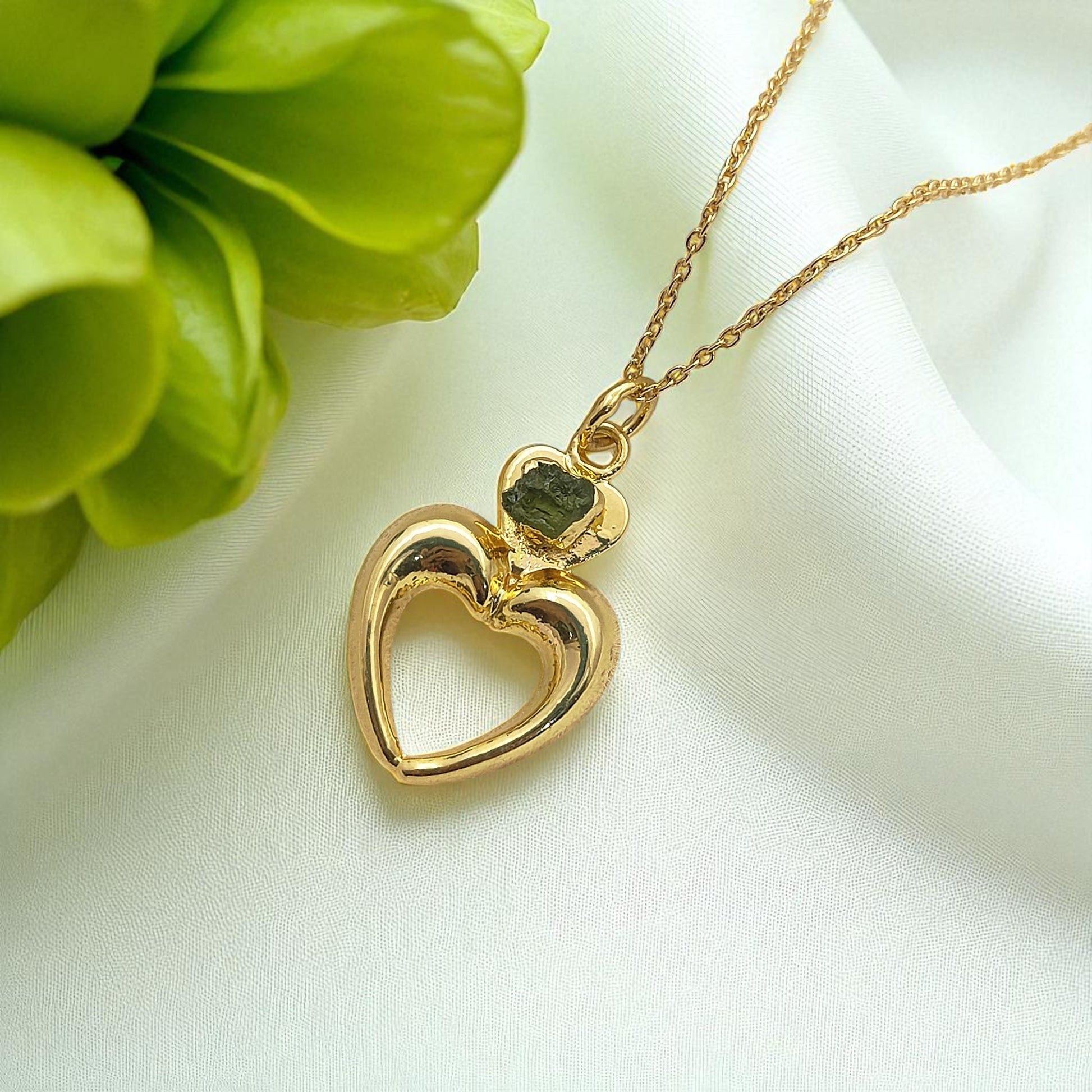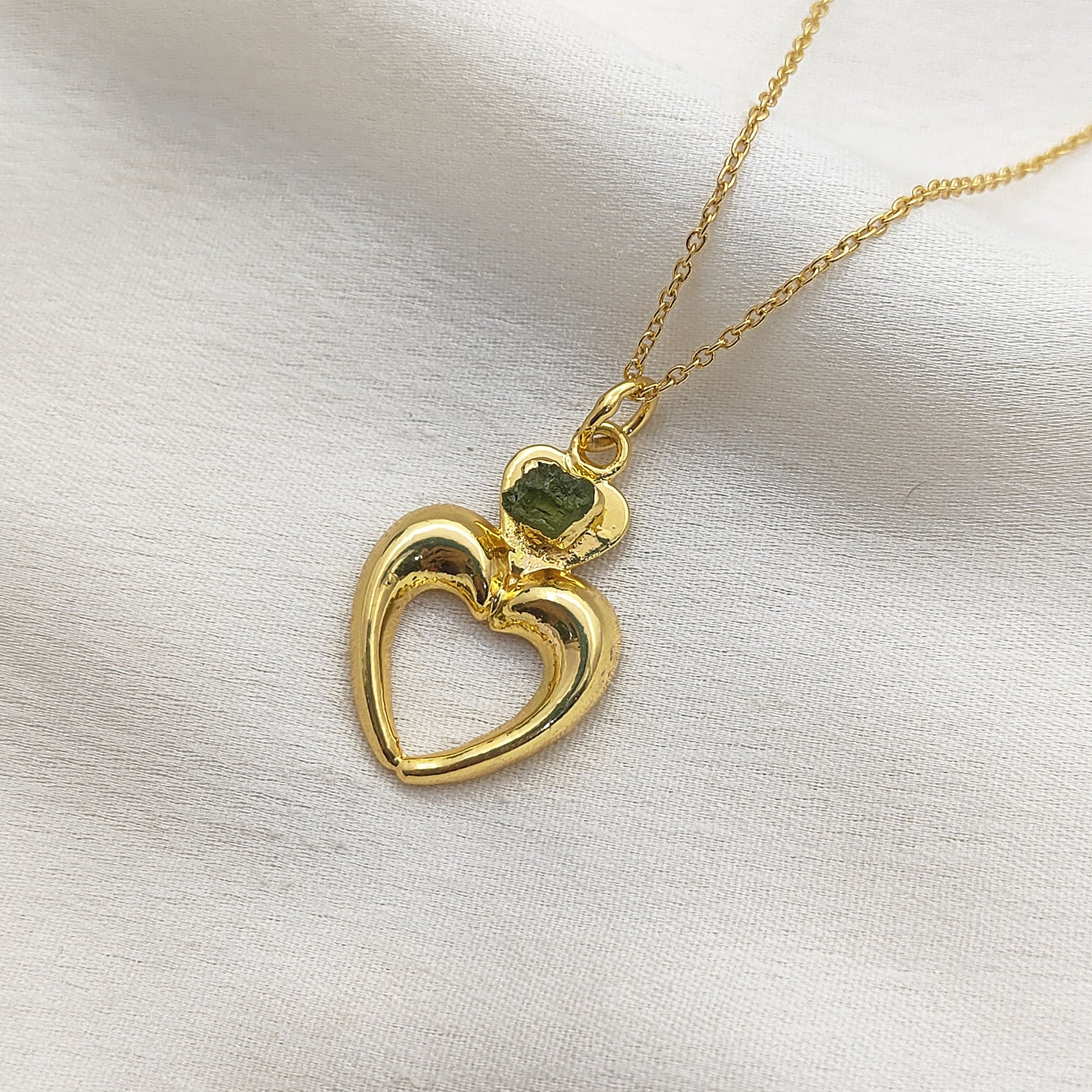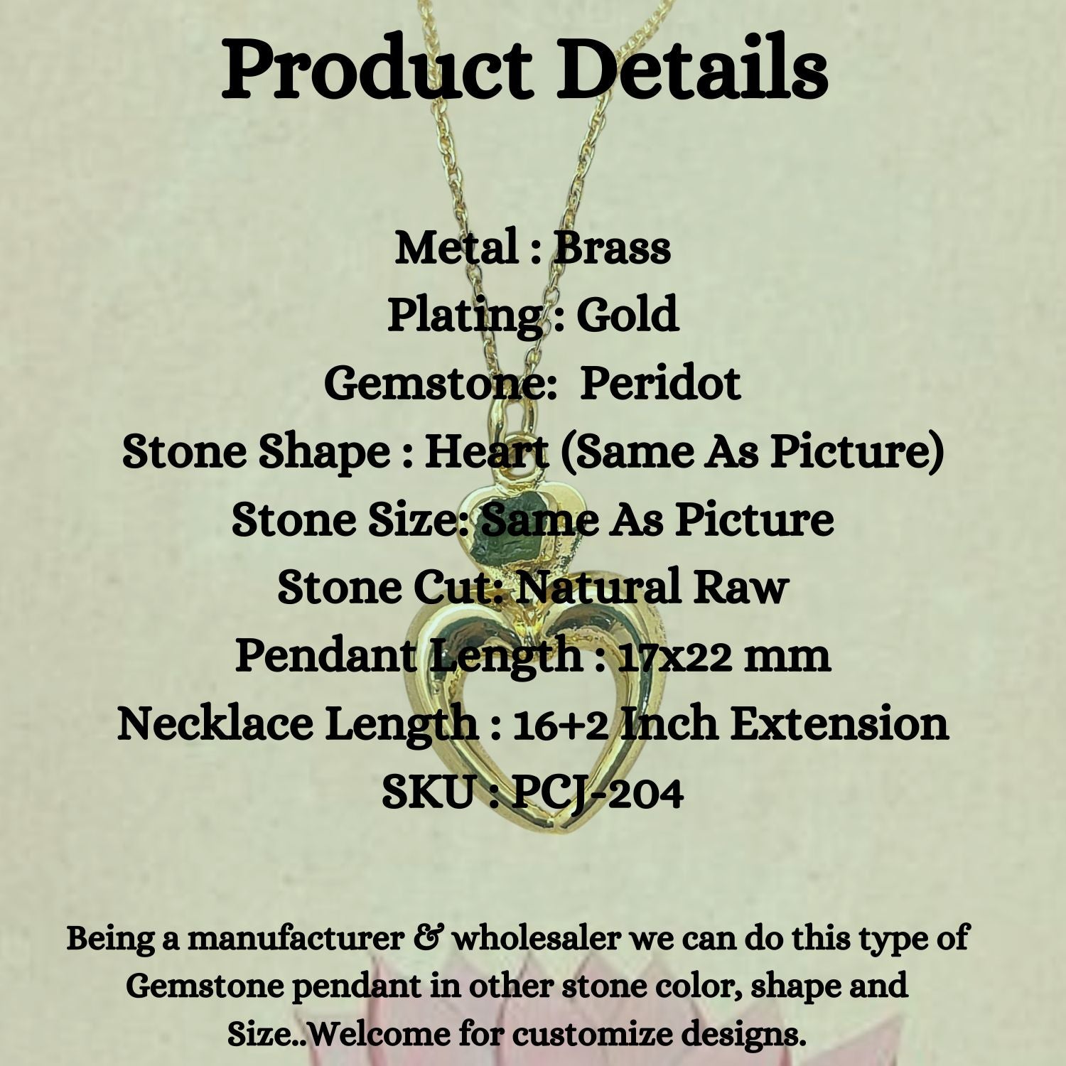 August Birthstone Raw Peridot Necklace with Heart-Shaped Pendant 14K Gold Electroplated Handmade Boho Jewelry