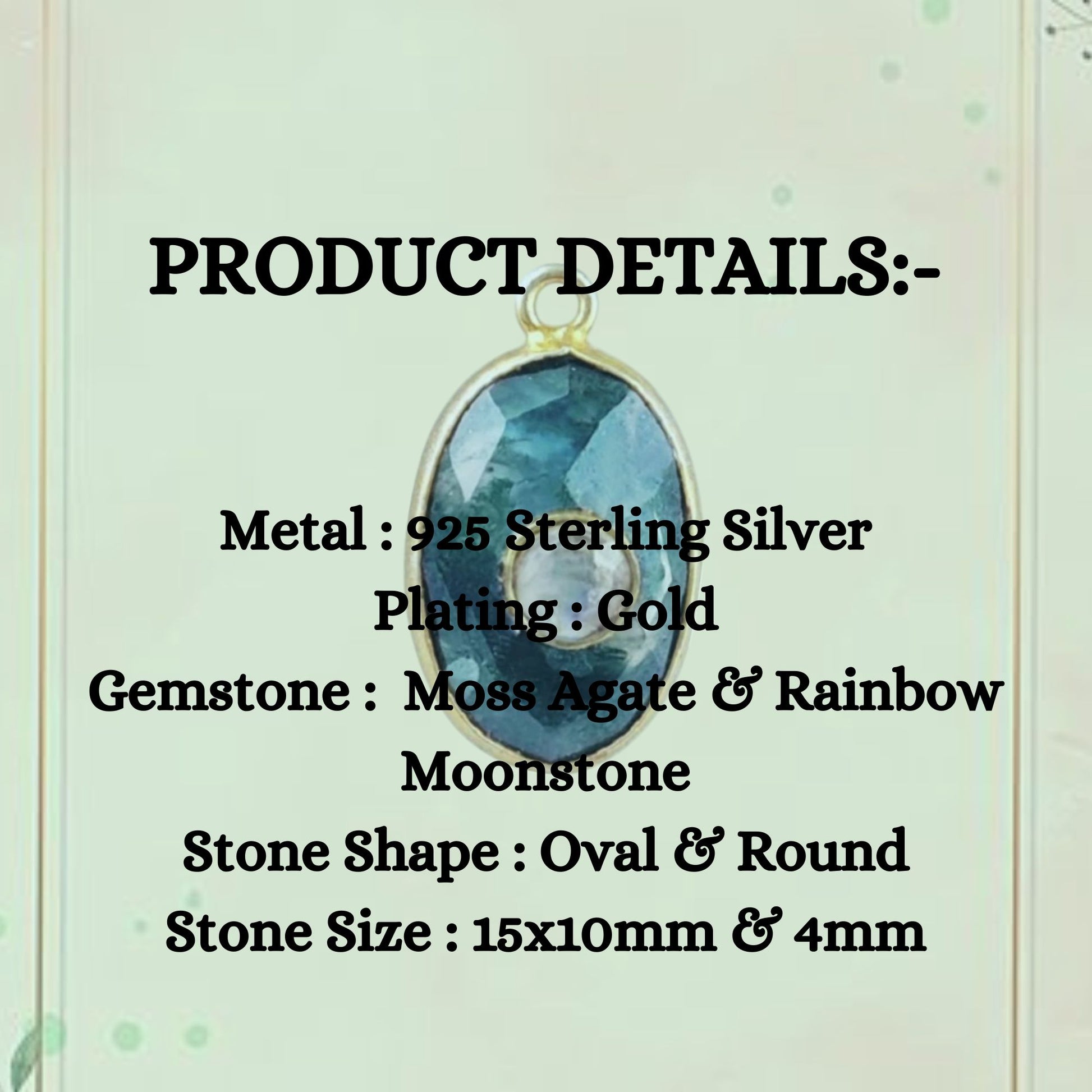 Beautiful Gold-Plated Silver Moss Agate & Rainbow Moonstone Pendant Birthstone Handmade Charms- Selling Per Piece