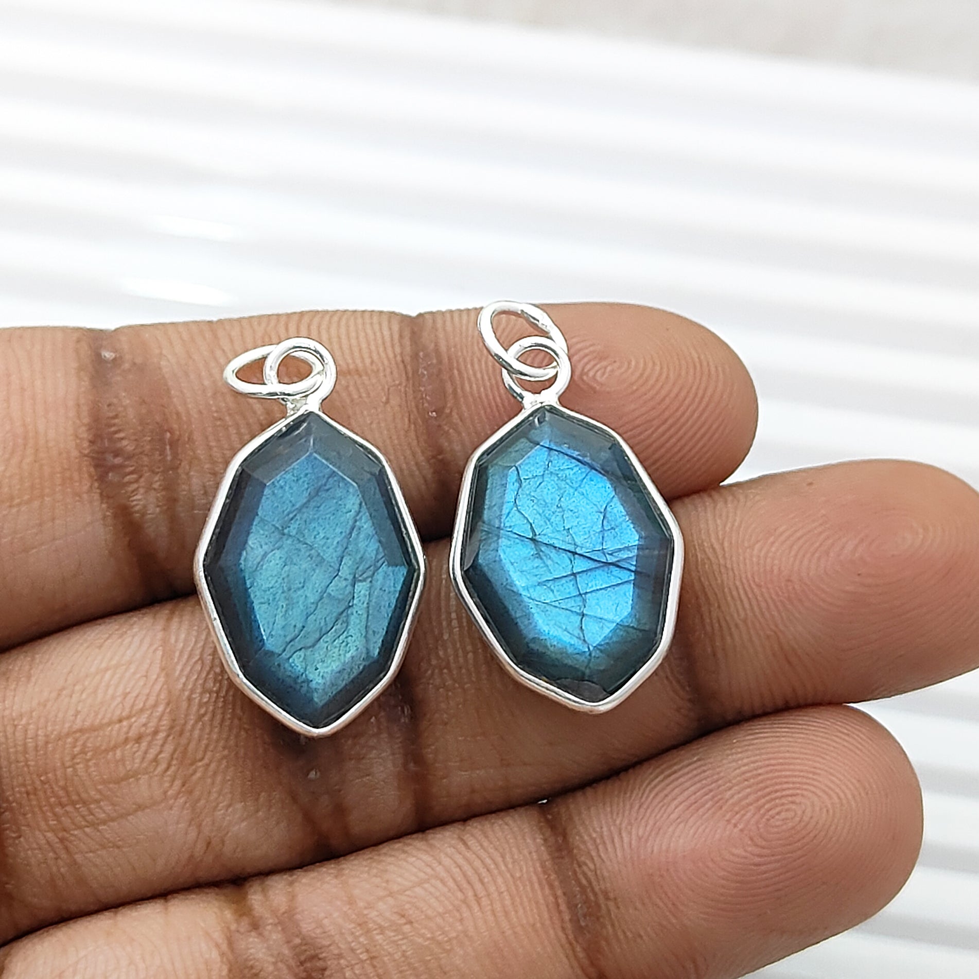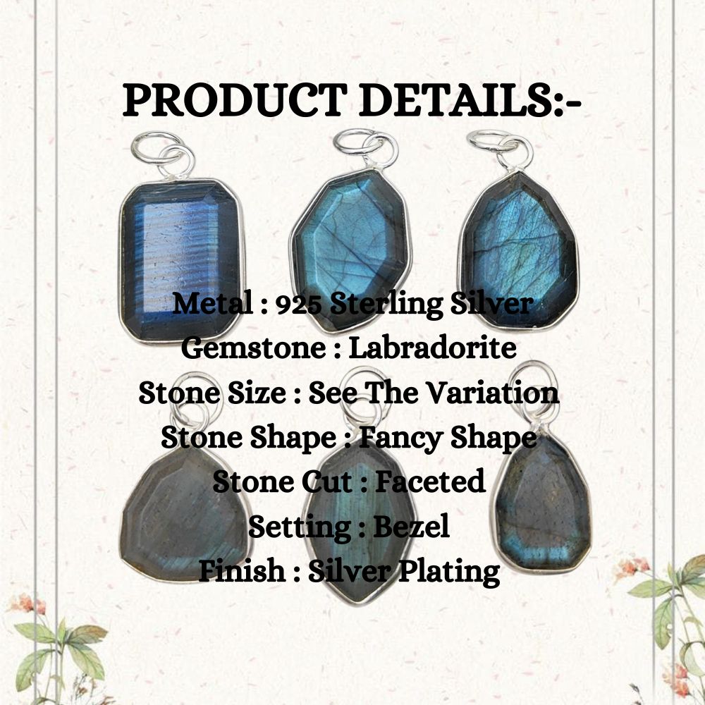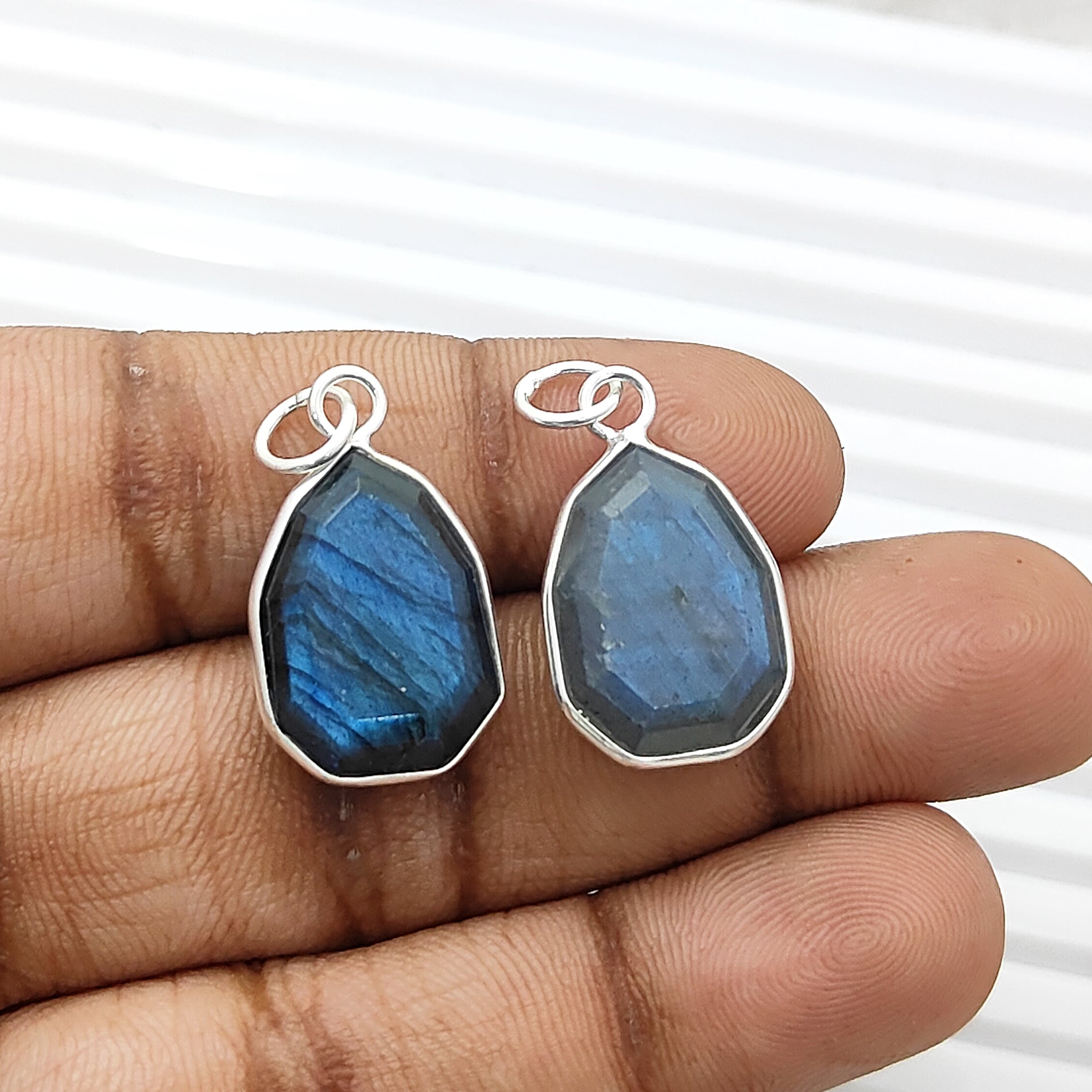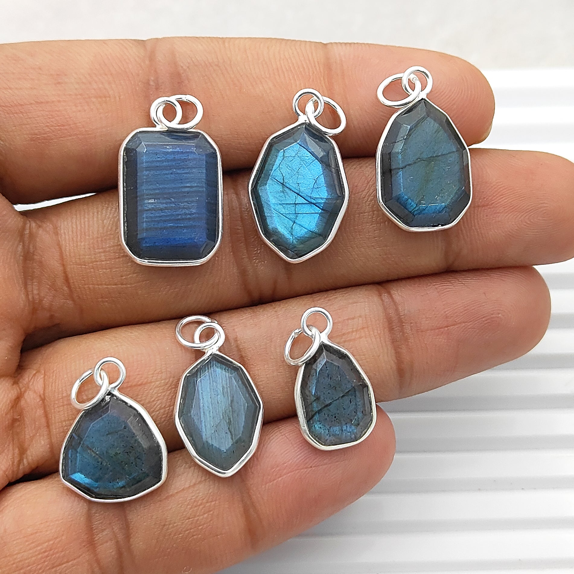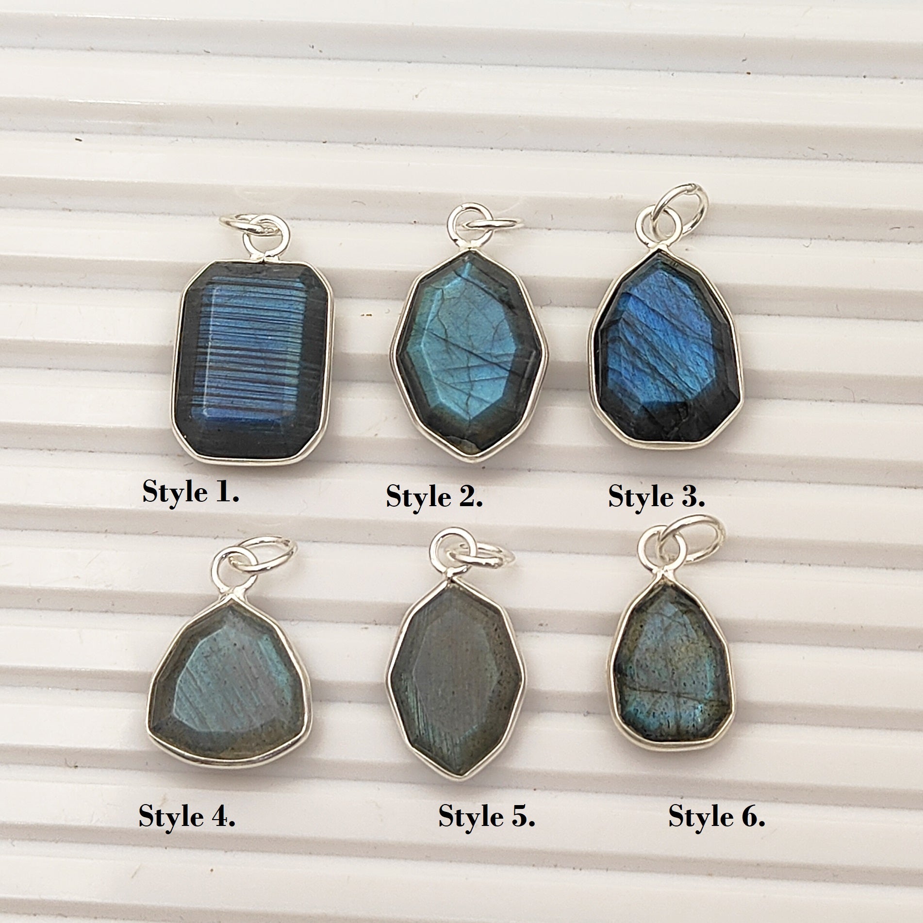 Blue Labradorite Faceted Pendant in Solid 925 Sterling Silver Handmade Minimalist Necklace Charm - Selling Per Piece