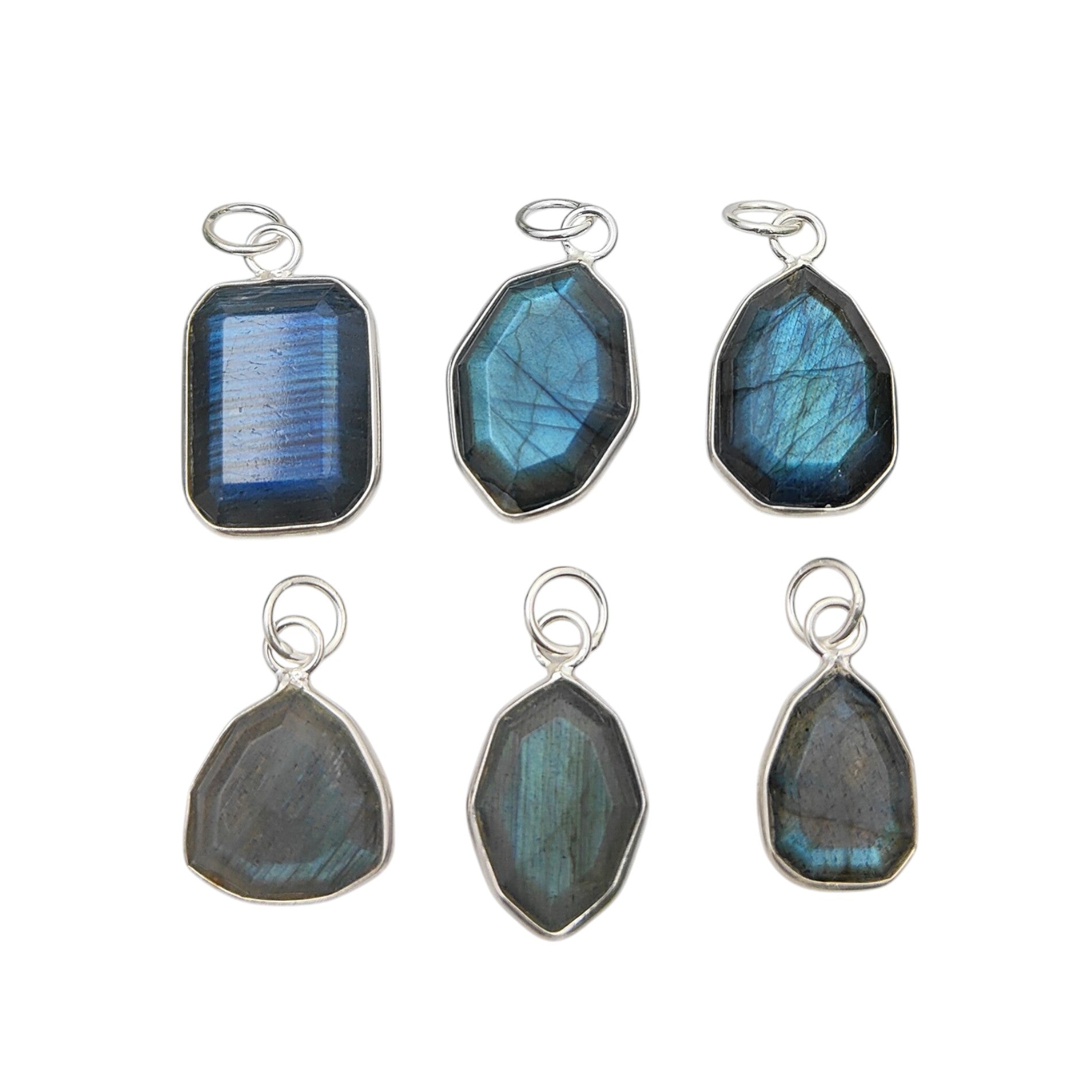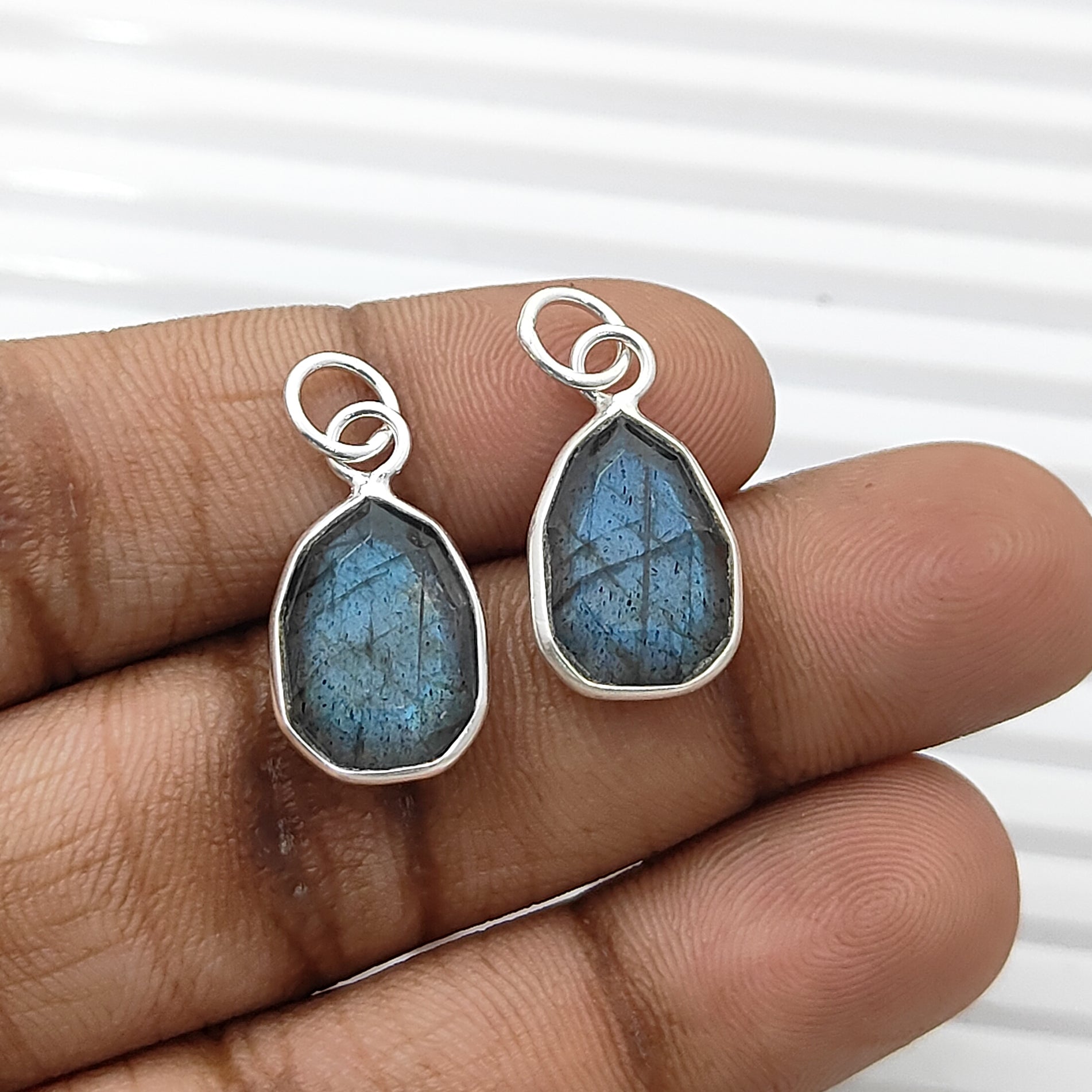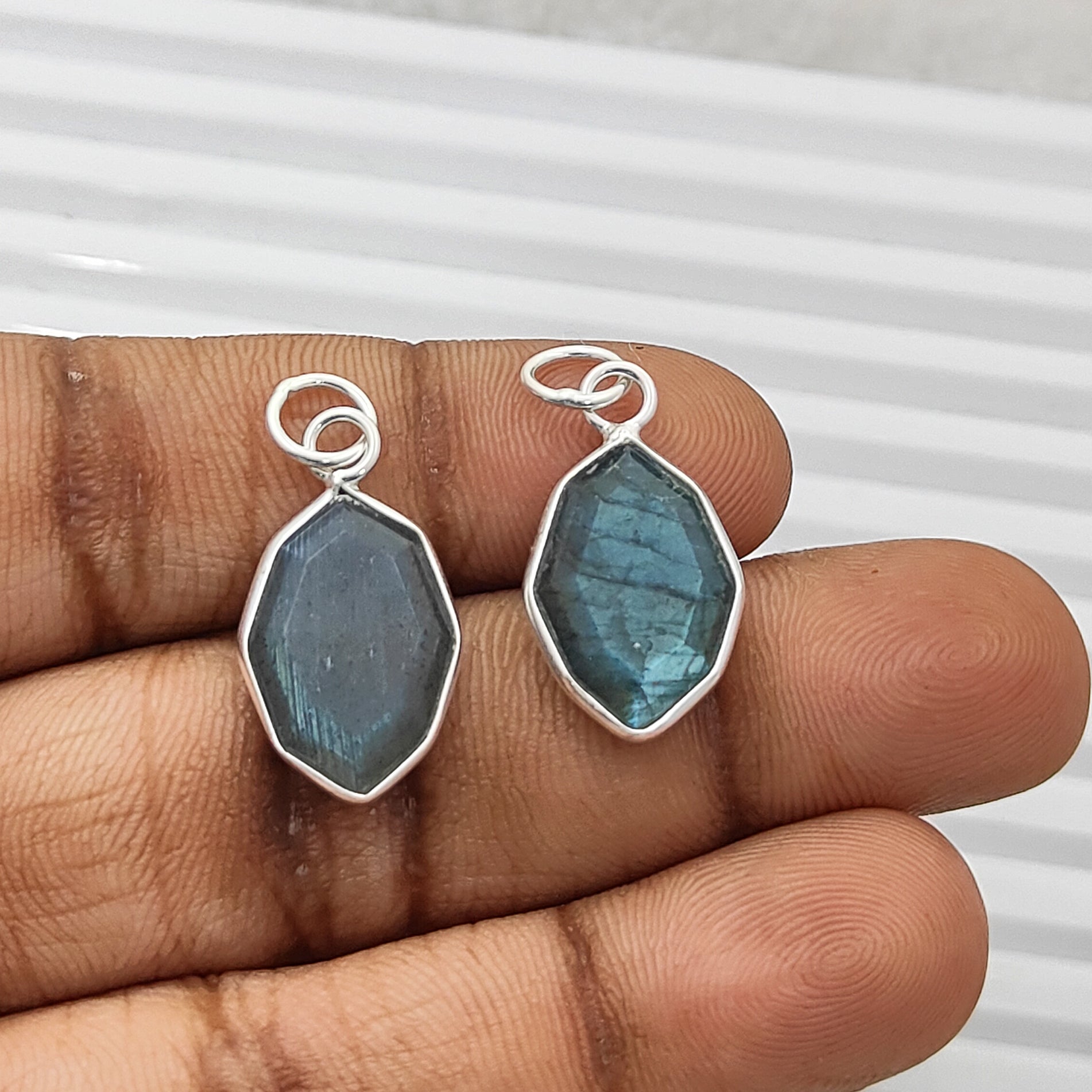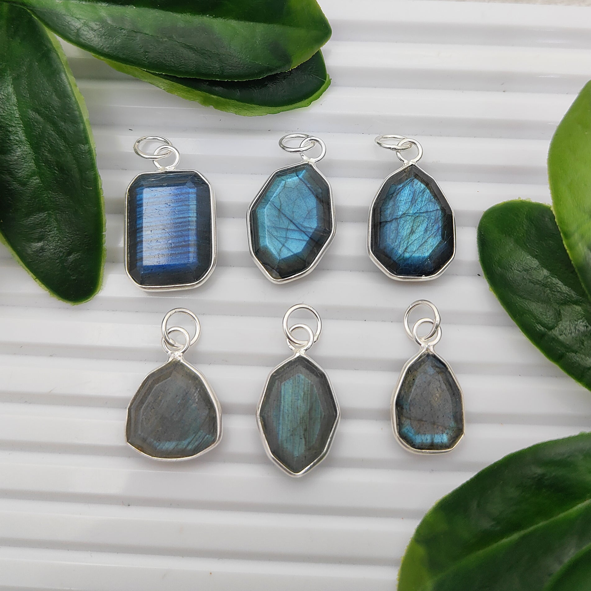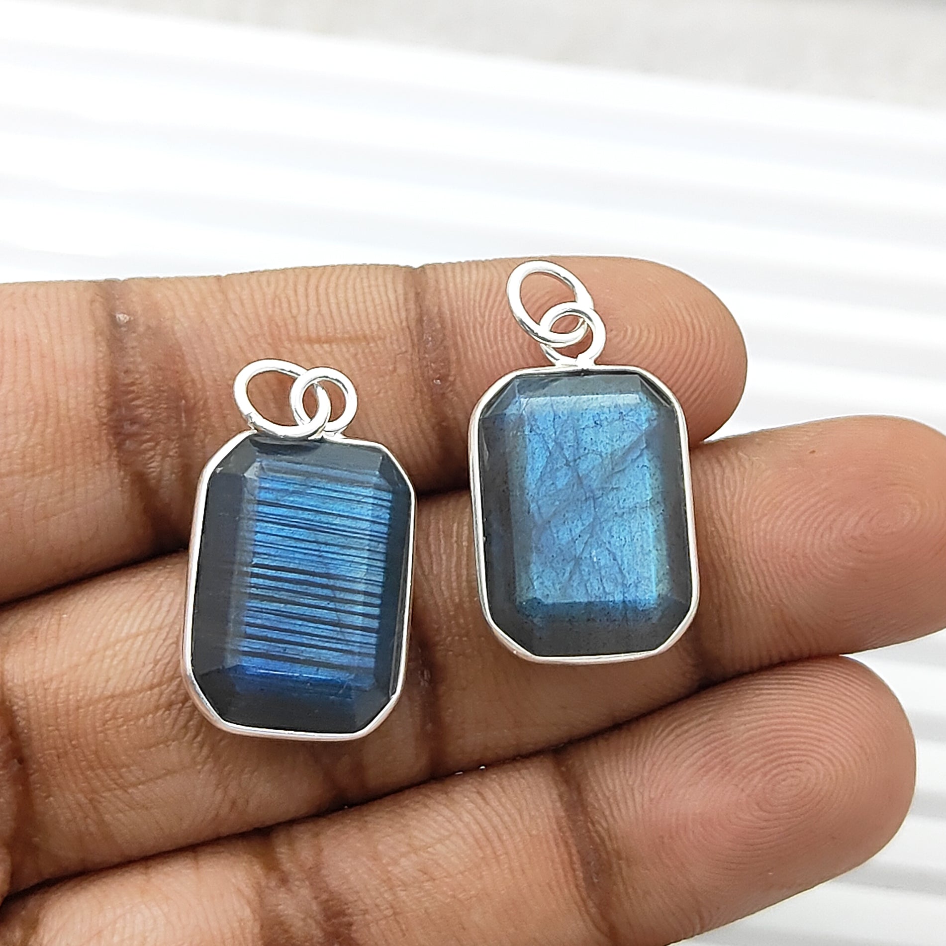 Blue Labradorite Faceted Pendant in Solid 925 Sterling Silver Handmade Minimalist Necklace Charm - Selling Per Piece
